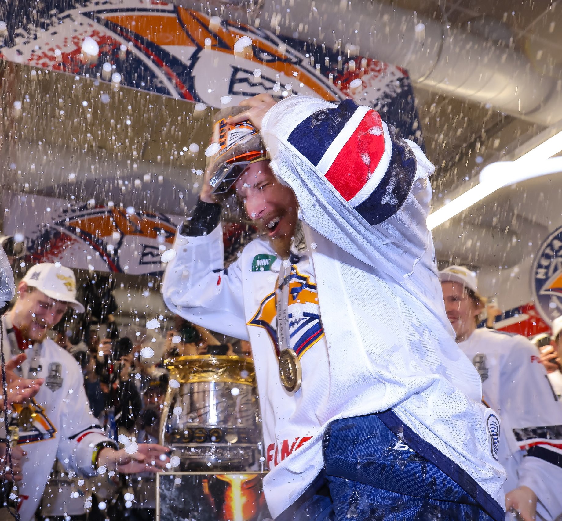 После официальной церемонии награждения на льду ярославской «Арены-2000» игроки поспешили в свою раздевалку. Именно там принято бурно праздновать свои победы.