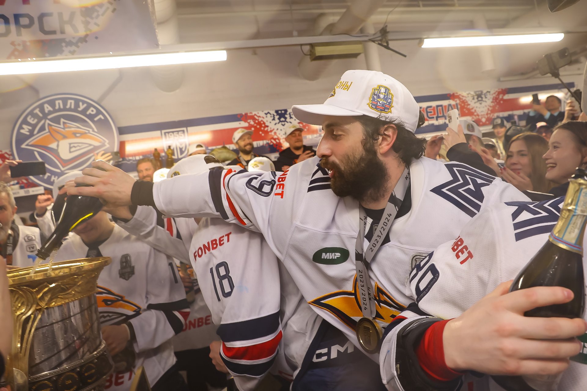 Хоккеисты магнитогорского «Металлурга» в третий раз в своей истории выиграли Кубок Гагарина — главный трофей КХЛ. После церемонии награждения тренеры, игроки и их жены, а также руководство клуба и журналисты поспешили в раздевалку команды, чтобы отпраздновать победу. Их эмоции и радость — в нашем фоторепортаже.