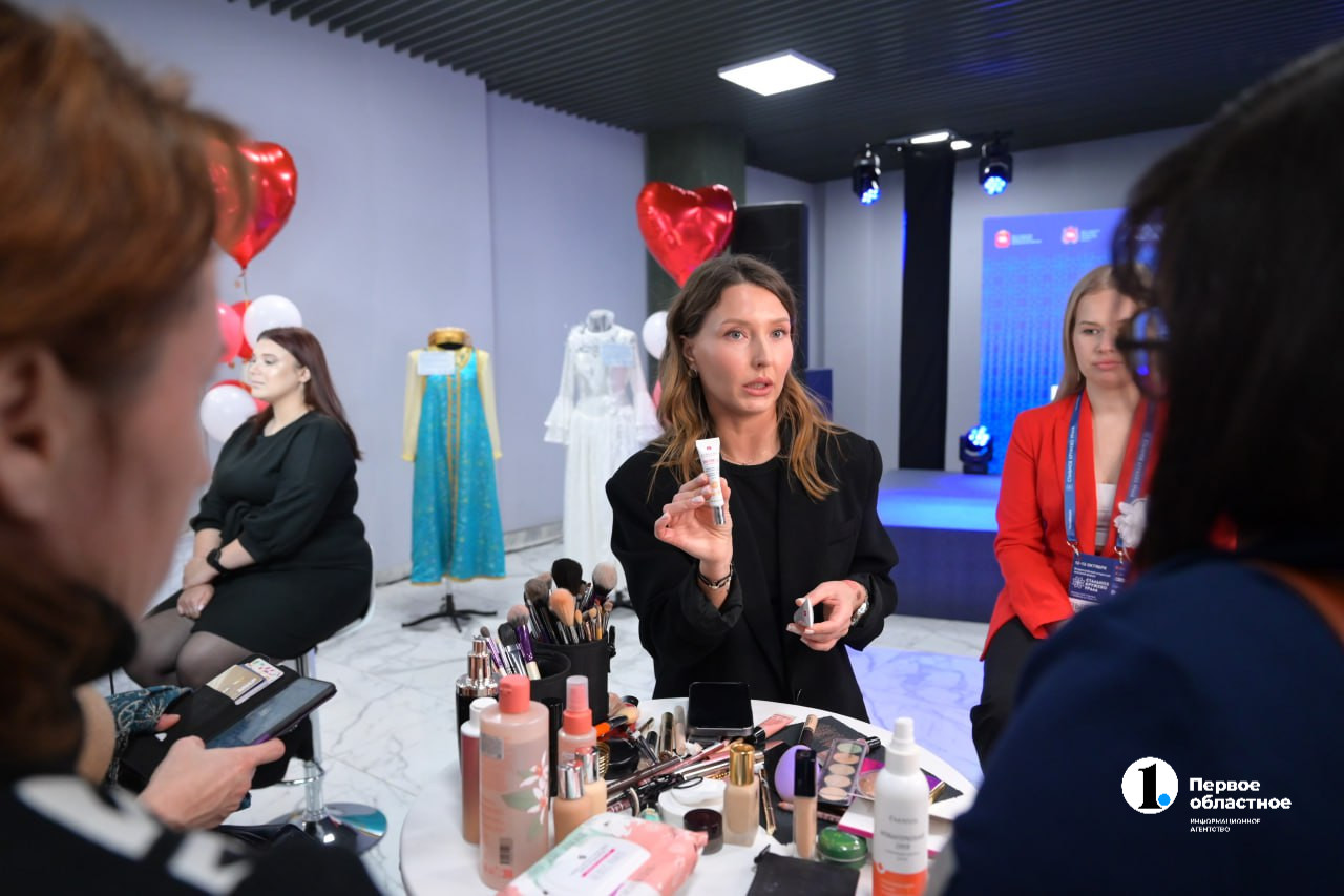 А визажисты форума с удовольствием рассказывают участницам о бьюти-продуктах и преображают их.