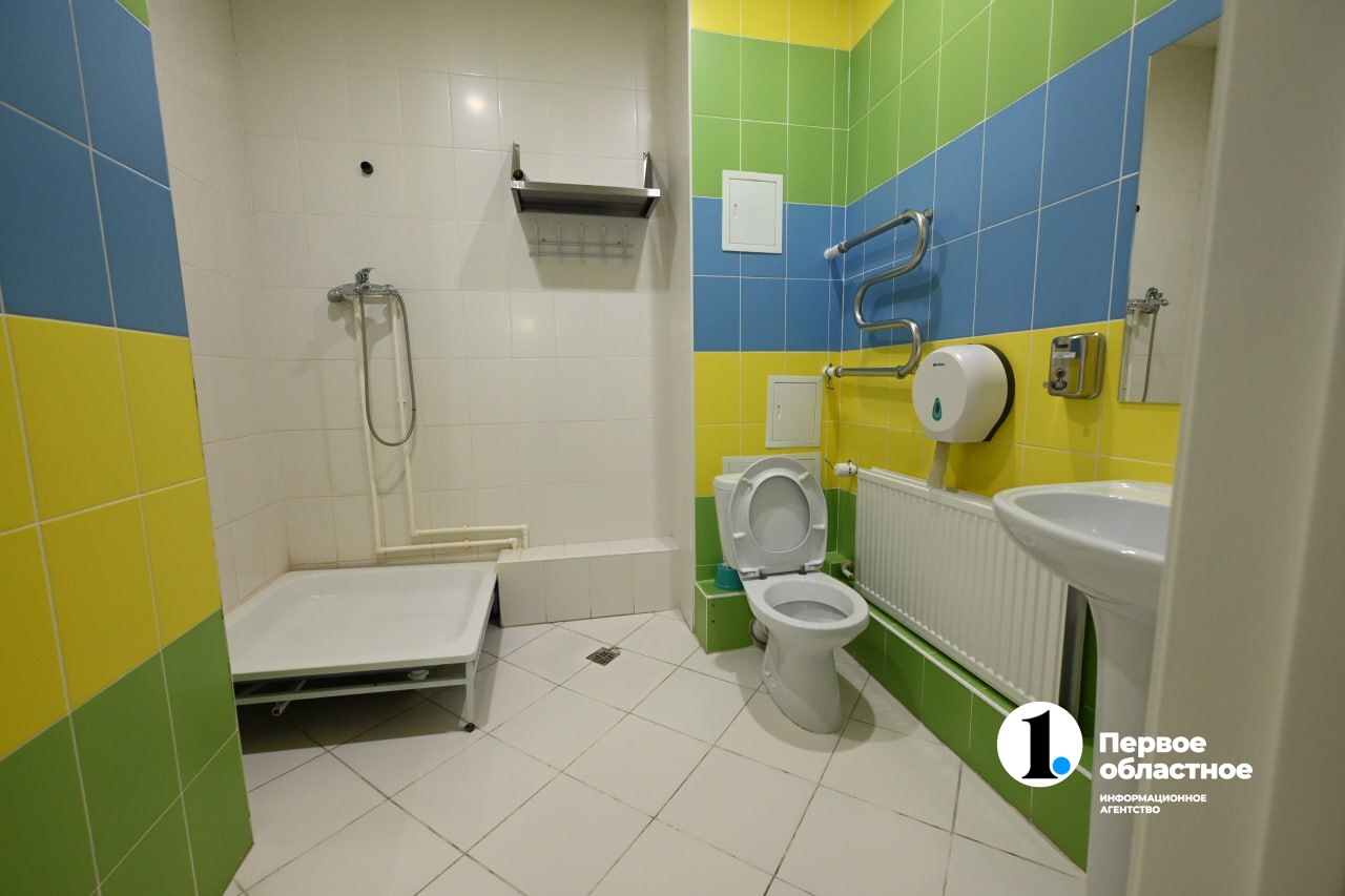 В родзале можно устроить полное затемнение — блэкаут (многим женщинам важно, чтобы не было яркого освещения во время родов), они могут слушать релаксирующую музыку и даже смотреть фильмы. За стеной — душ, где женщина может заглушать боли от схваток водными процедурами. Если с ней находится партнер (муж, сестра, мама), они могут ей помогать массажем и растираниями.