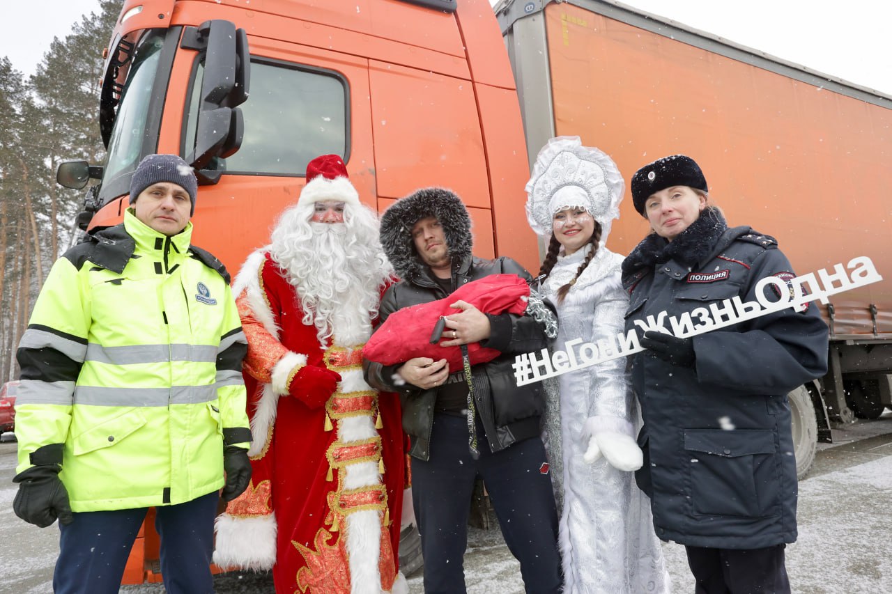 19 декабря на трассе М-5 «Урал» по направлению из Челябинска в Уфу прошла необычная акция. Дед Мороз и Снегурочка дарили цепи противоскольжения дальнобойщикам. Спецкомплекты стали настоящим предновогодним подарком для водителей большегрузов, но раздаче предшествовала небольшая лекция о ПДД. Впрочем, не каждый день ее можно послушать от начальника региональной ГИБДД Ивана Путкова.
