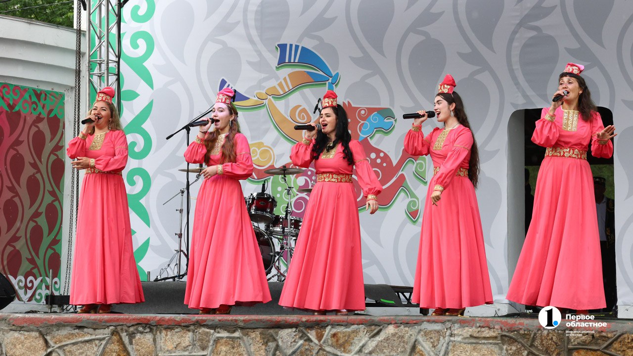 На сцену выходили народные коллективы в ярких костюмах. Тучи над Челябинском разгоняли творческие коллективы из Татарстана, Башкортостана, Челябинска и области.