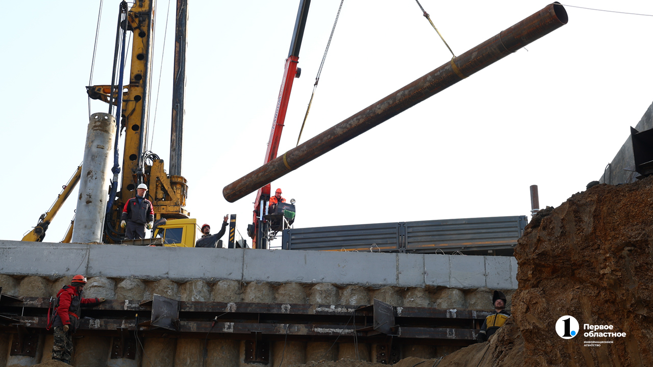 «Из запланированного объема грунта в 9 тысяч кубометров осталось выбрать всего 600 кубов. Мы приступили к возведению распределительного полюса стартового котлована второго яруса. По периметру монтируем балки, двутавры, раскрепляя их поперечными трубами, так называемыми расстрелами. На сегодняшний день сделано 58 тонн из 83. Строительная готовность у нас сегодня 93 процента», — уточнил спикер.