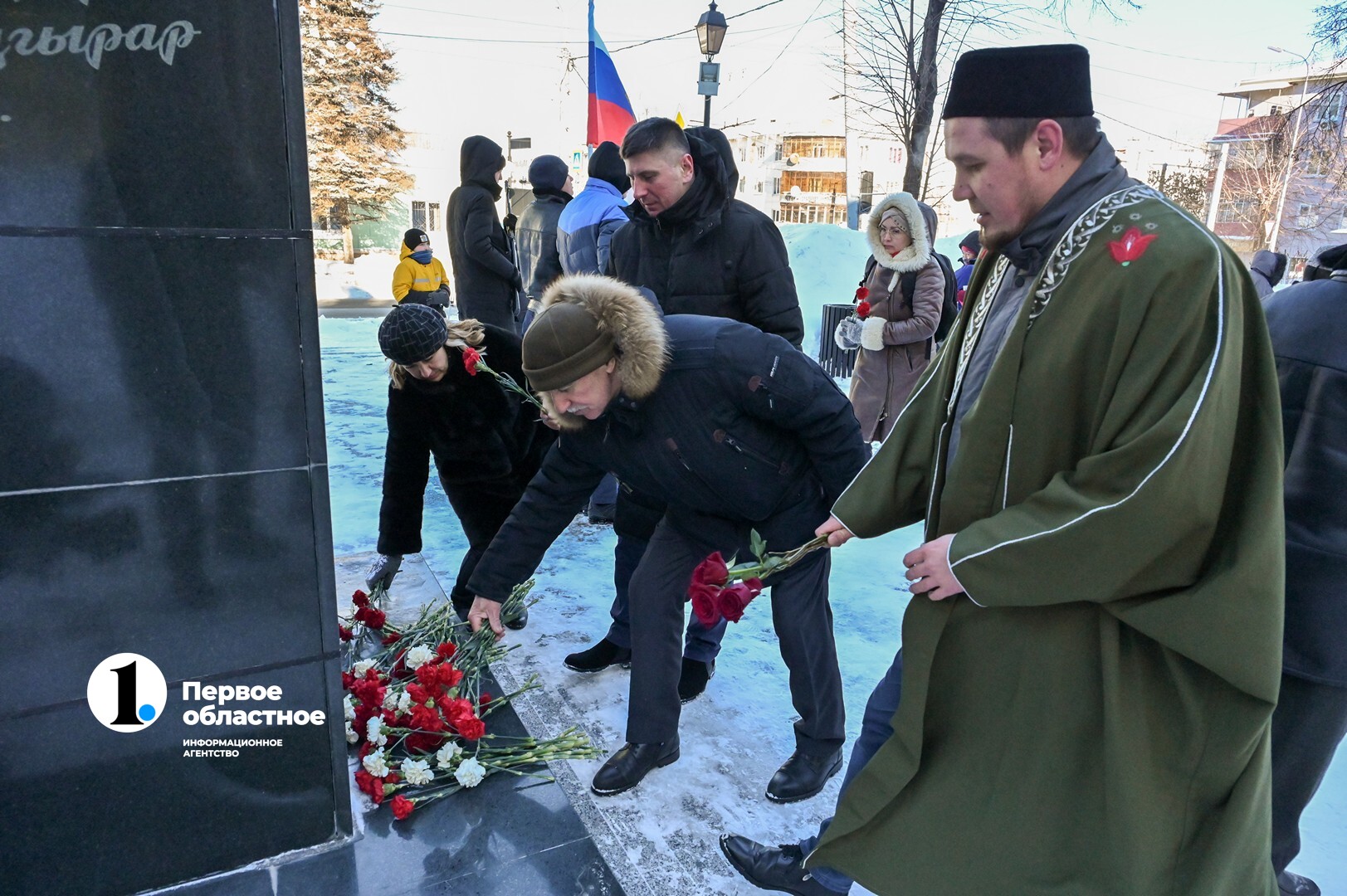 В митинге памяти приняли участие южноуральцы всех возрастов: дети прочитали стихи на русском и татарском языках, взрослые — возложили цветы к монументу.
