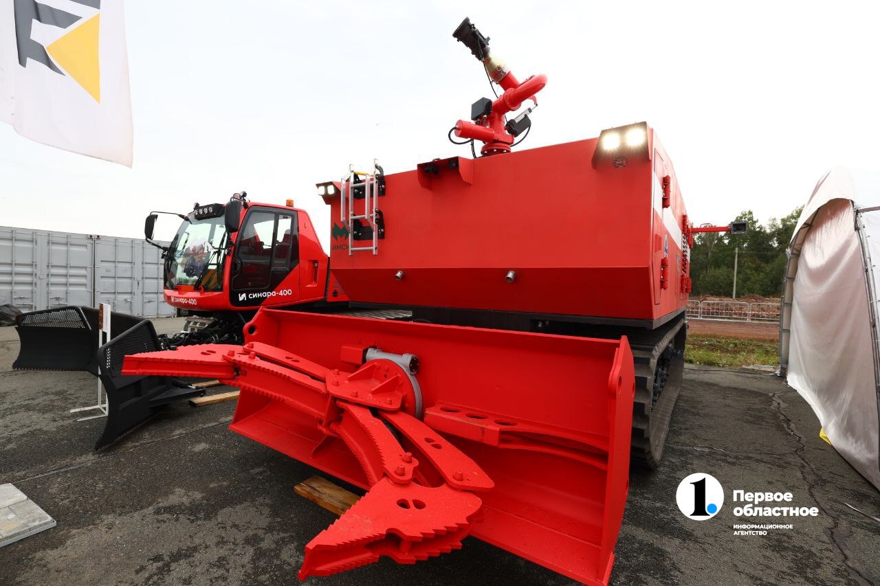 Также на полигоне представили опытный образец работизированной пожарной машины. Это тоже разработка «ДСТ-Урал». Машина предназначена для работы в местах, где человеку находиться опасно для жизни. Управляется техника дистанционно — пультом. Производительность пожарного насоса — 70 литров в секунду. Также здесь есть навесное оборудование, которое позволяет разгружать завалы.