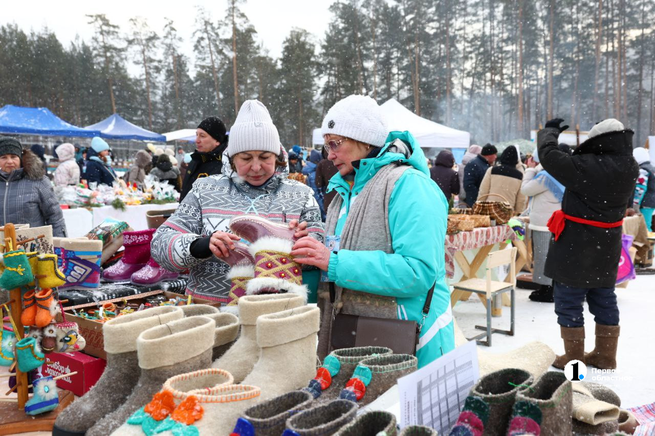 Но особое внимание, конечно же, было уделено валенкам. Их можно было приобрести на ярмарке. Мастера представили изделия на любой вкус: тут и простые валенки, и с декором, и даже с картинами.