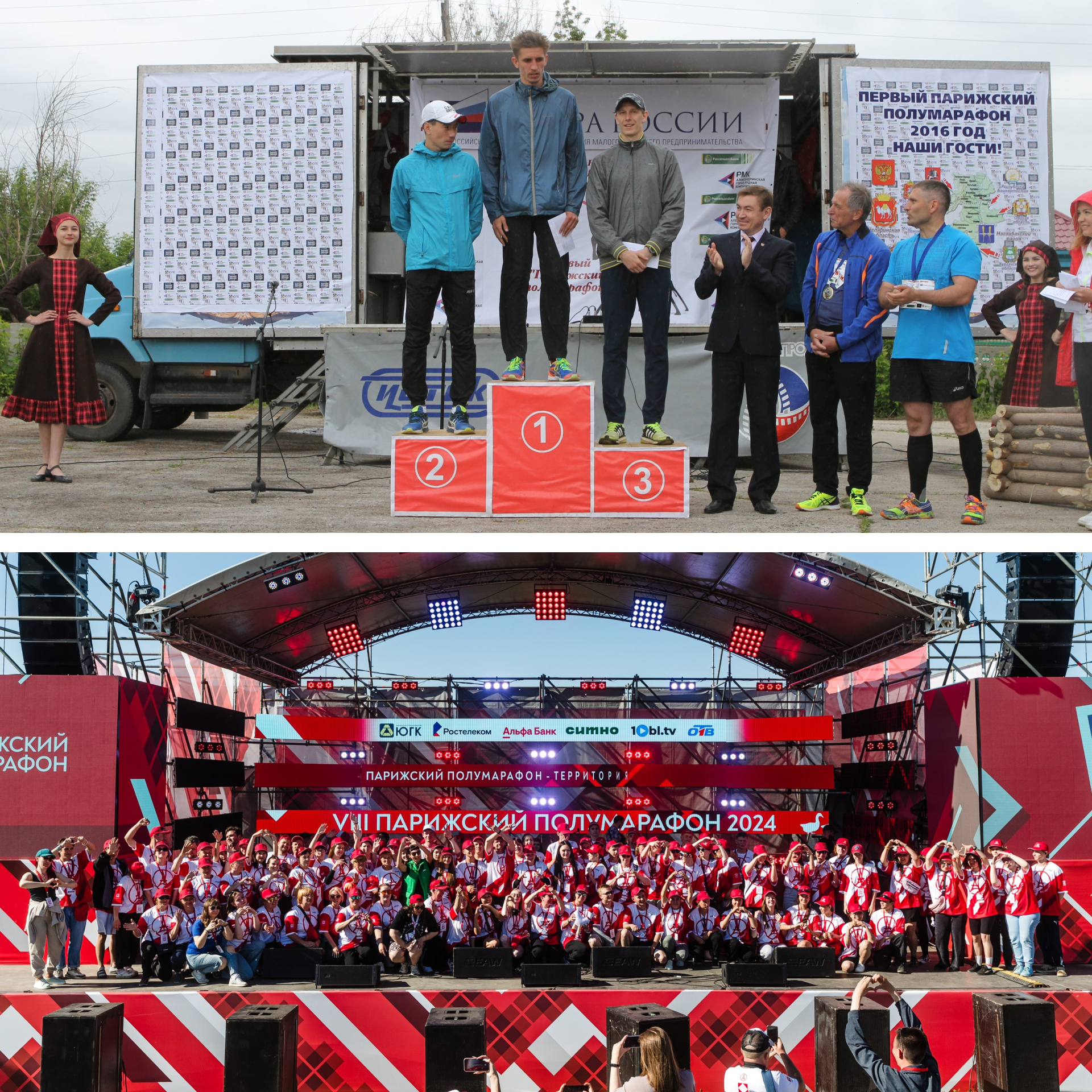 С чего начинался Парижский полумарафон? Смотрите фотокарточки, которые мы «упаковали» в коллажи. В верхнем ряду иллюстрации 2016 года, в нижнем — 2024-го. И настоятельно рекомендуем понять наш посыл: делаем это не для того, чтобы посмеяться или как-то принизить уровень организации состязаний девятилетней давности. Куда важнее в этой истории другой смысл — показать, как рядовое событие можно превратить в состязания международного масштаба. Если очень этого захотеть.