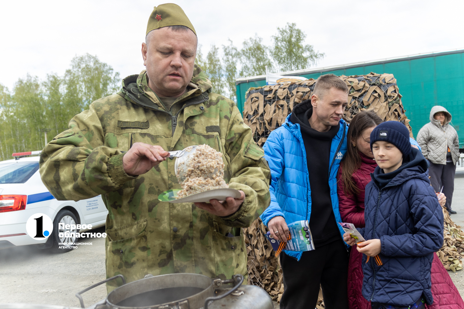 Представители ФКУ Упрдор «Южный Урал» организовали площадку для отдыха с угощением: настоящей томленой военной кашей, чаем на местных яблоках, сушками с домашним вареньем и выпечным «солдатским» хлебом.