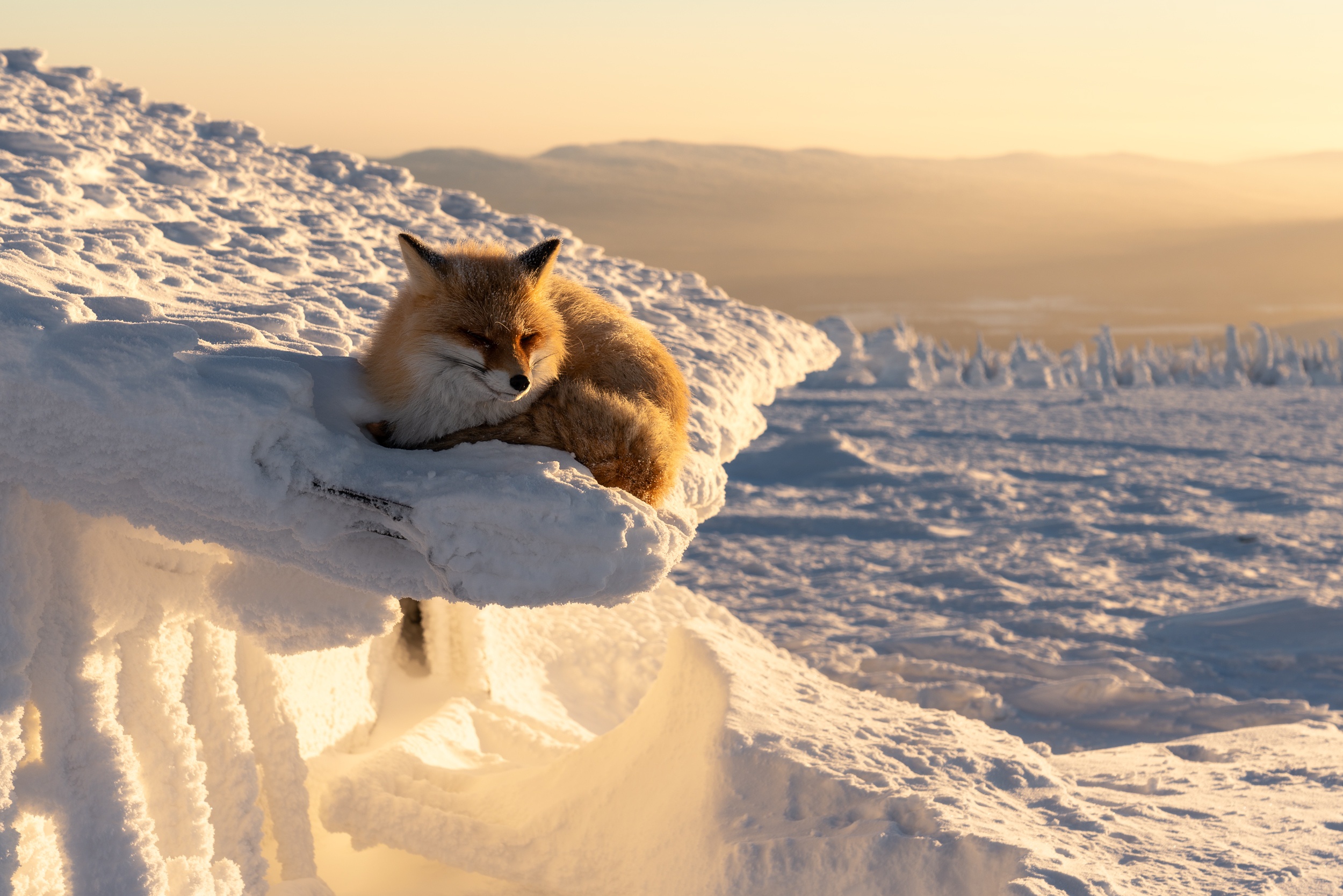 «И все потому, что я нес с собой фото-видео-технику, чтобы запечатлеть моменты, которые подарит природа. А природа в очередной раз удивила. В первый день съемок было −35 градусов. Надо ли говорить, что работать на таком морозе по три часа на рассвете и закате — дело не из легких. Тем не менее я как завороженный смотрел вокруг, при этом интенсивно отмахивая замерзшие руки».