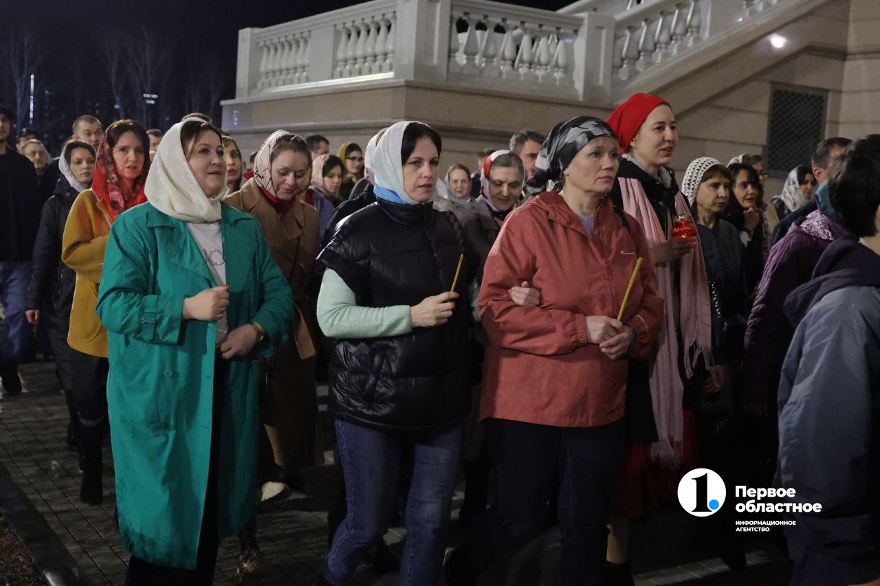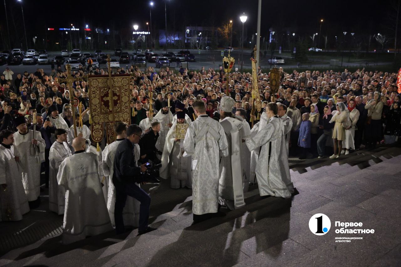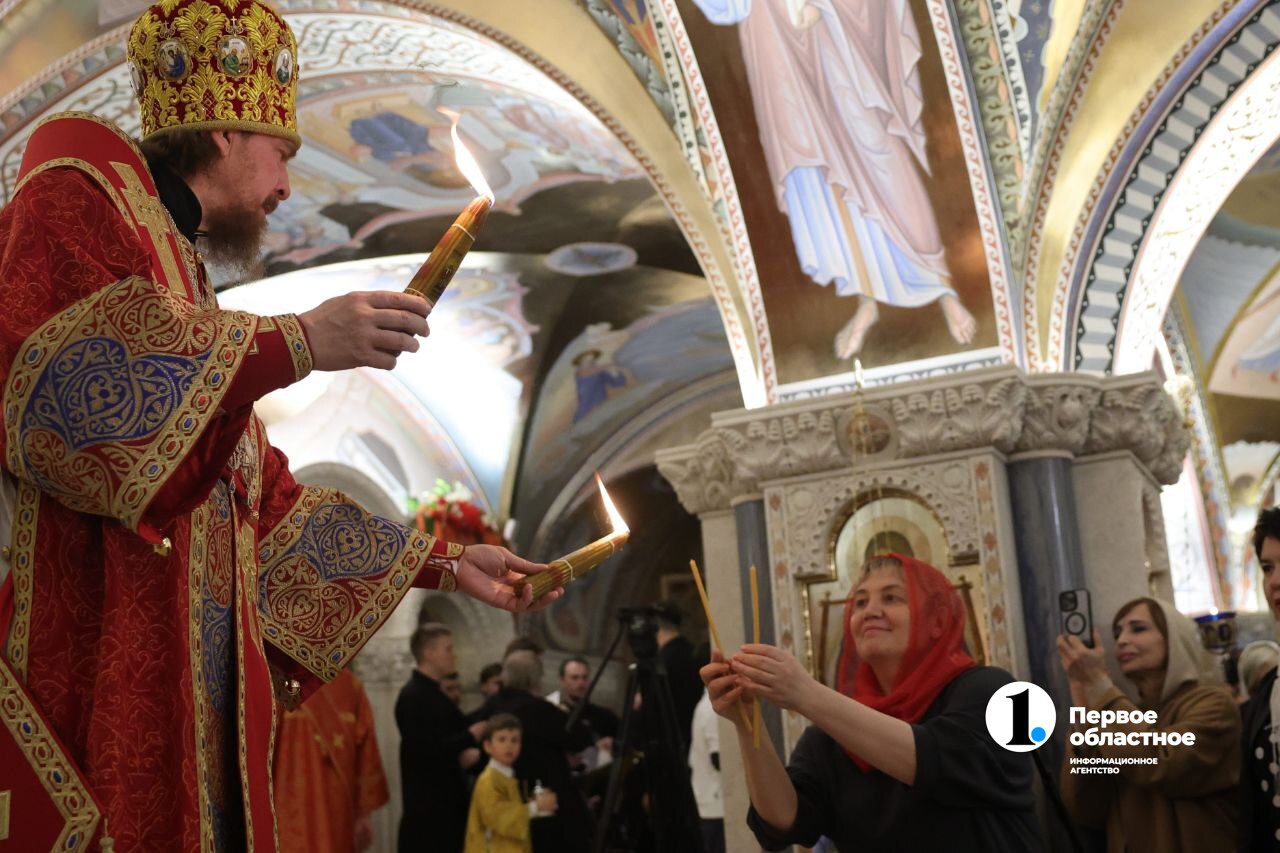 В минуты, когда верующие следовали крестным ходом, журналисты ИА «Первое областное» встречали Благодатный огонь, который в канун православной Пасхи сошел в иерусалимском храме Гроба Господня.