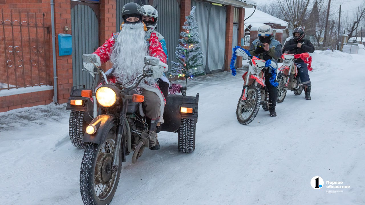 Челябинский мотоклуб Wings во второй раз провел праздничную акцию «Мотодед Мороз». Накануне «кортеж» из трех мотоциклов — старенького «Днепра» и двух кроссовых байков — проехал по ледовым городкам, чтобы поздравить жителей, прежде всего юных, и вручить подарки.