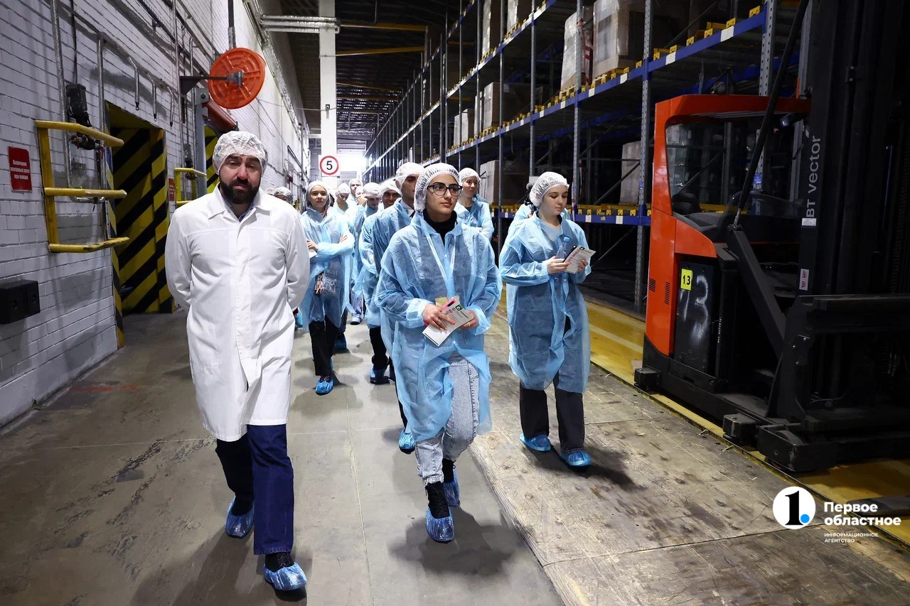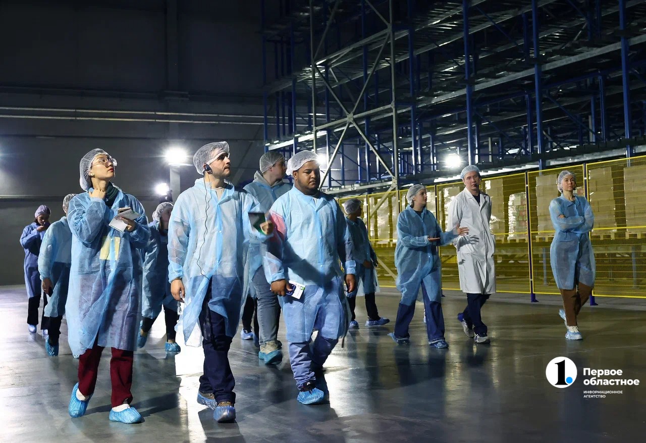 Далее для иностранных гостей устроили экскурсию по цеху. Им показали все этапы создания продукции — от замешивания теста до фасовки и транспортировки изделий. В конце студенты оказались в новом огромном — площадью более 12 тысяч «квадратов» — логистическом центре, в строительство которого было вложено больше 2 миллиардов рублей.