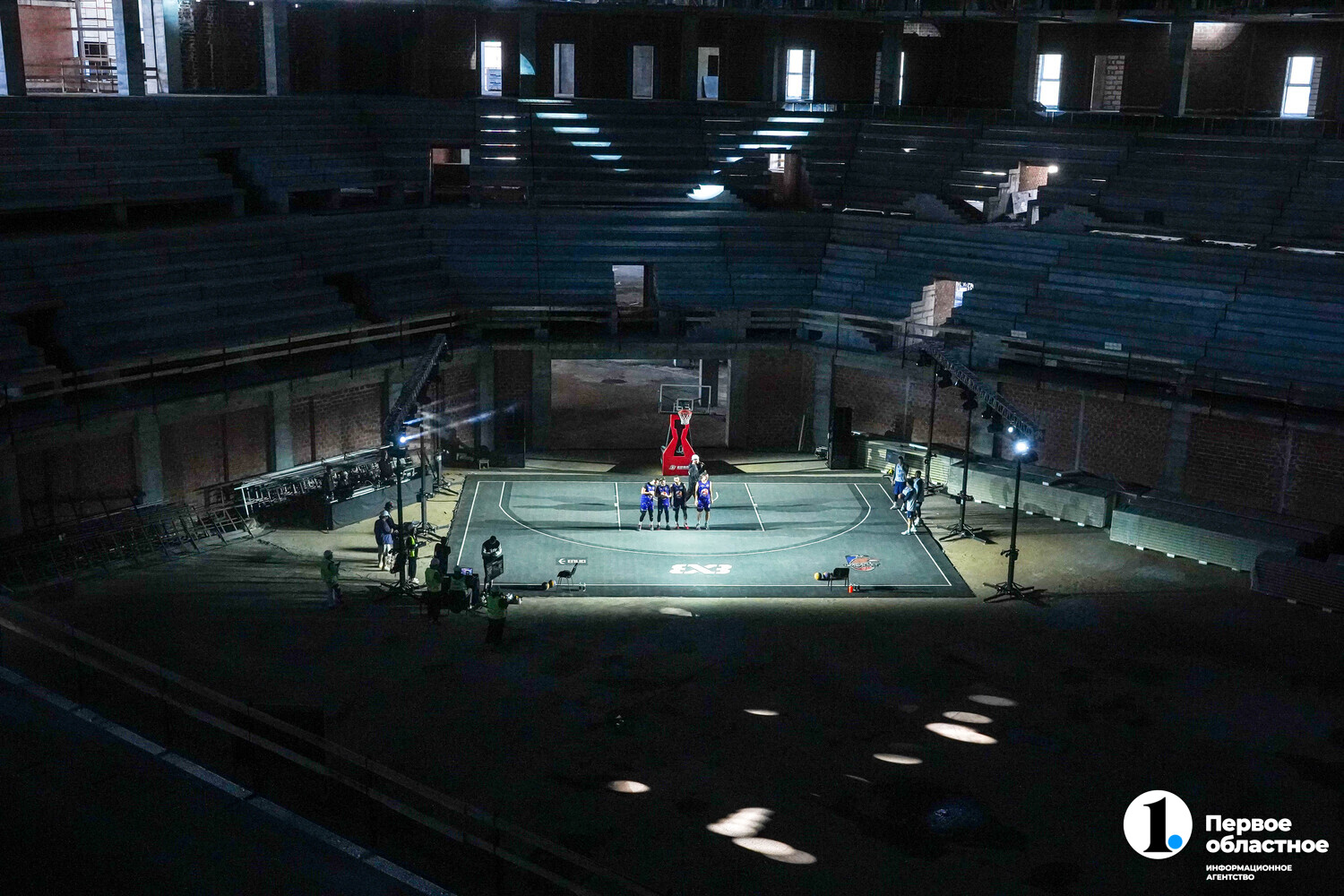 Кстати, не остались равнодушными к происходящему и строители. Они с верхних ярусов арены внимательно наблюдали за баскетбольным поединком.