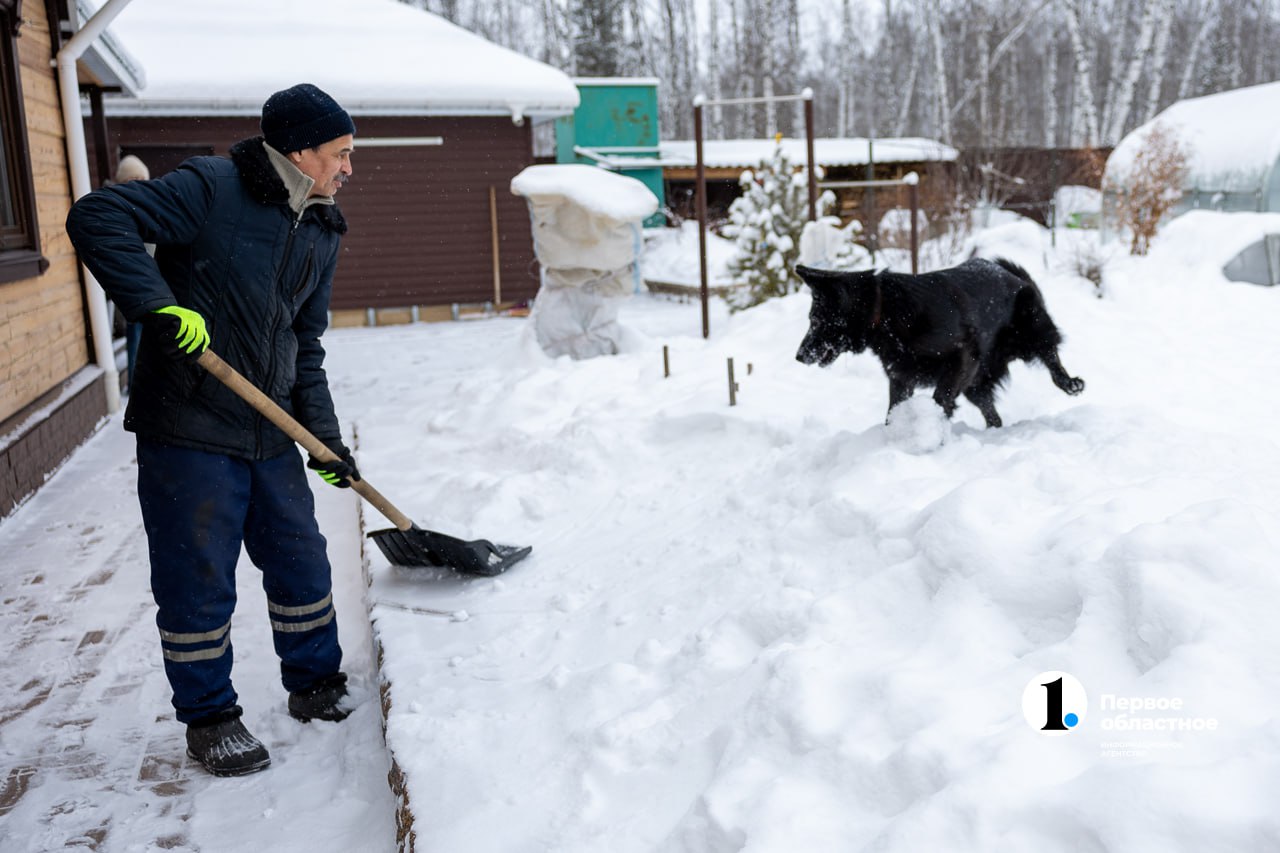 Он ведет внуков во двор. Там полно работы: накануне шел снег, пора браться за лопаты.