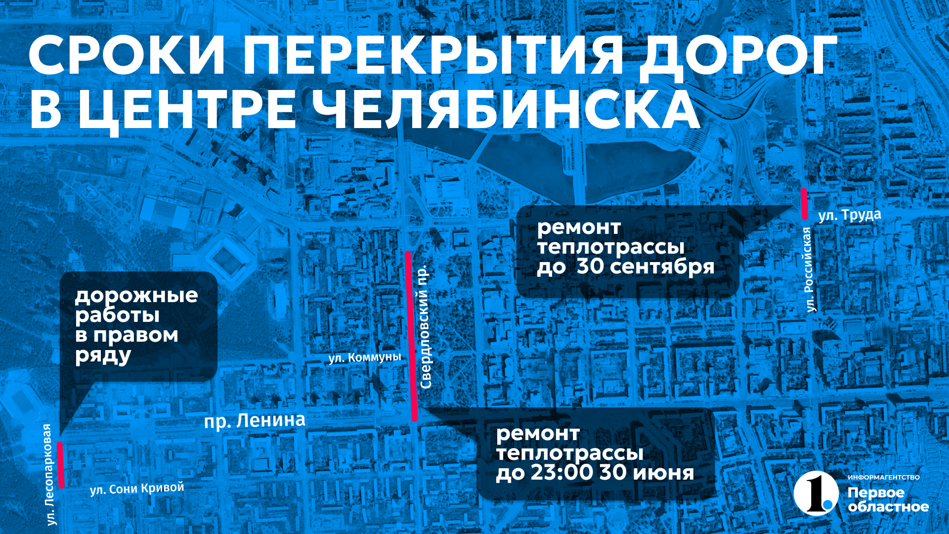 На время перекрытий водителям нужно продумывать схемы объезда. Для удобства и наглядности ИА «Первое областное» собрало самые масштабные работы в центре Челябинска в карточку.