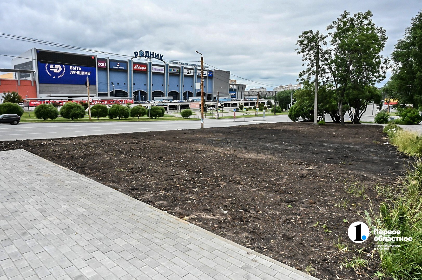 Еще одна точка — сквер у ТРК «Родник». Первые этапы благоустройства уже завершены: уложены тропинки, оформлены границы зон. Здесь появятся лавочки, новые деревья, газон и площадка для выгула собак — горожане сами попросили о ее создании.