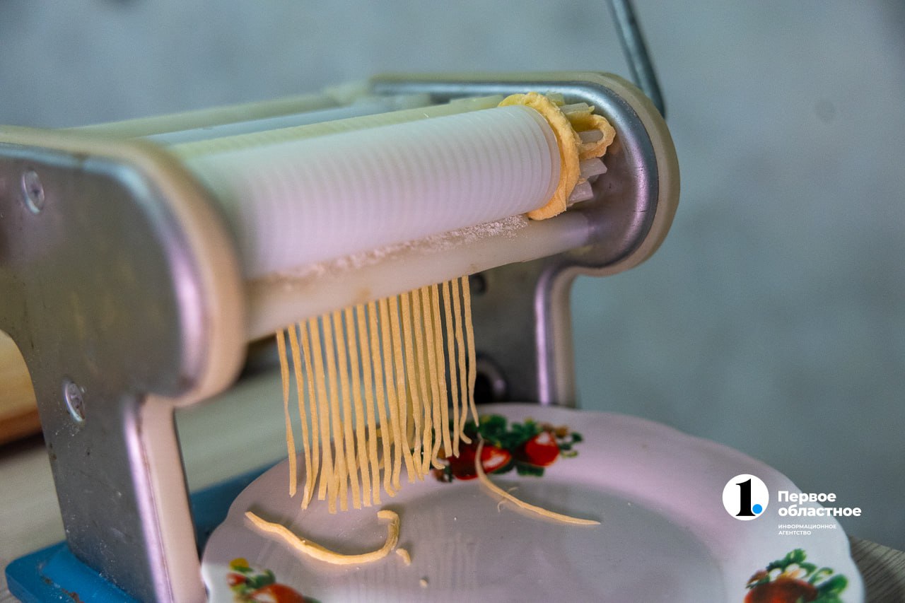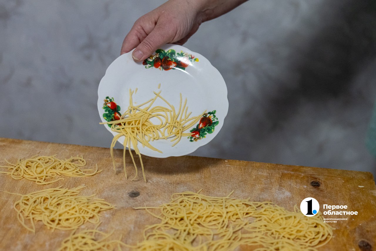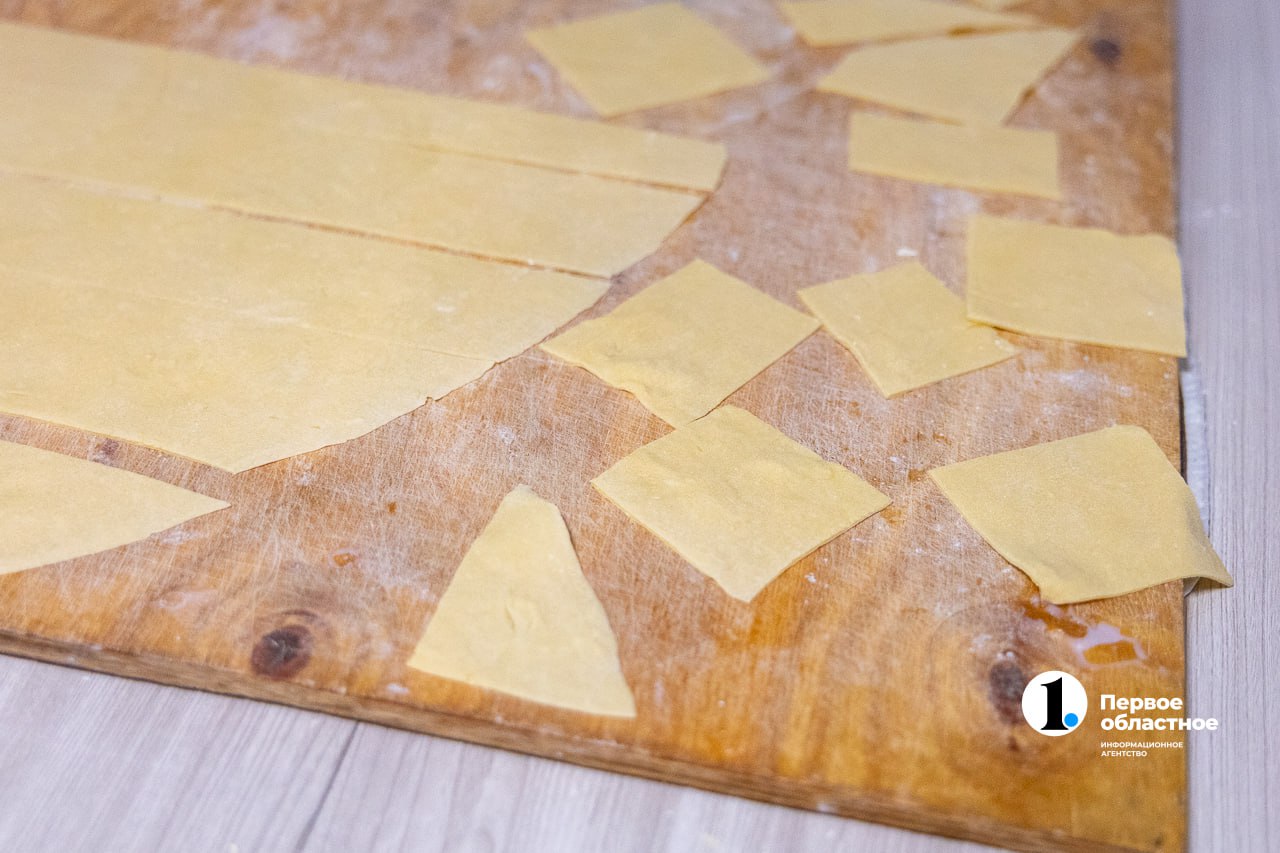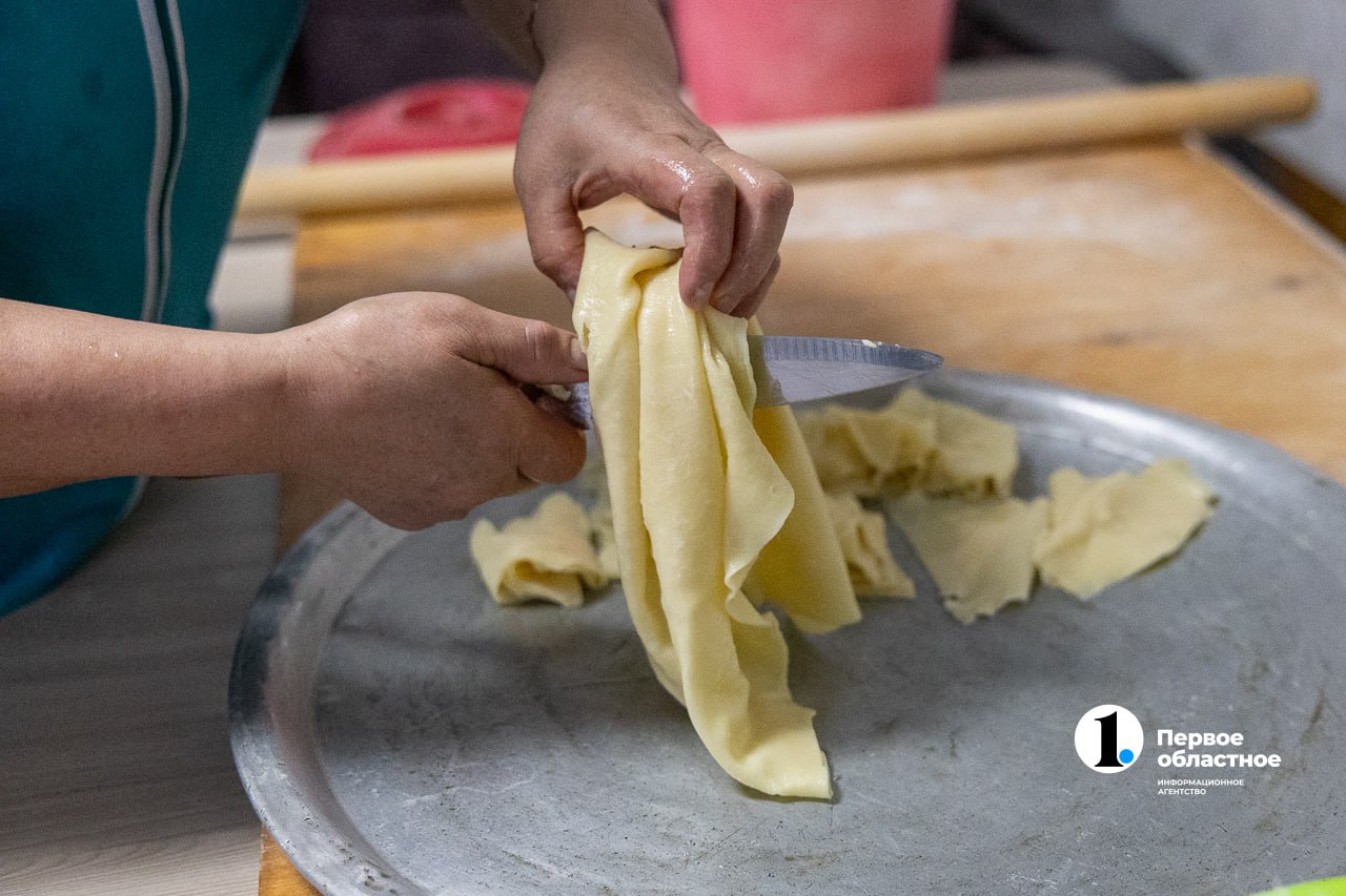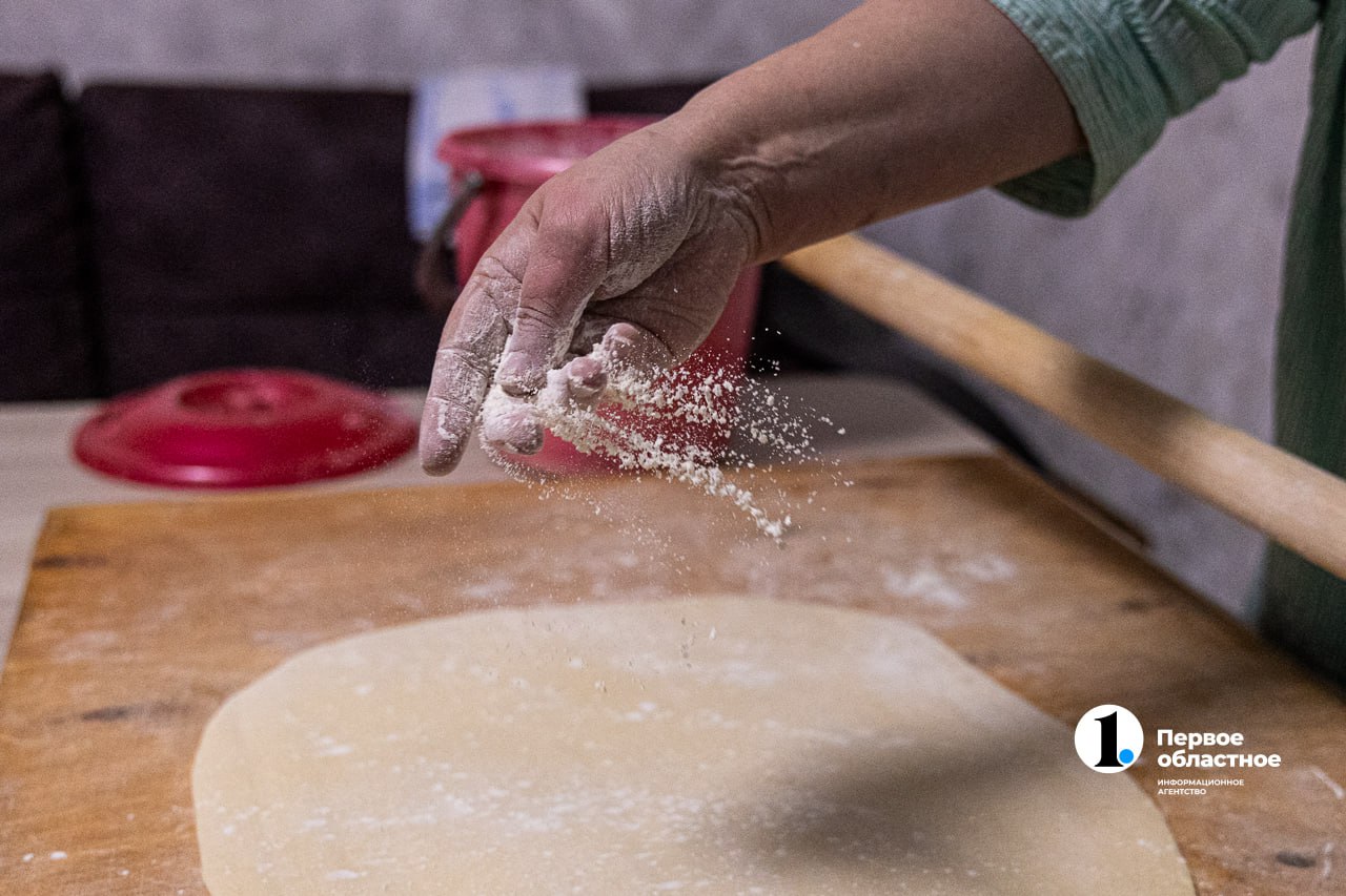 «Здесь тесто иное — крутое, блестящее, и его нужно месить до тех пор, пока руки не устанут. От того, насколько вы от души это делаете, такой у вас и вкус получится», — наставляет хозяйка.