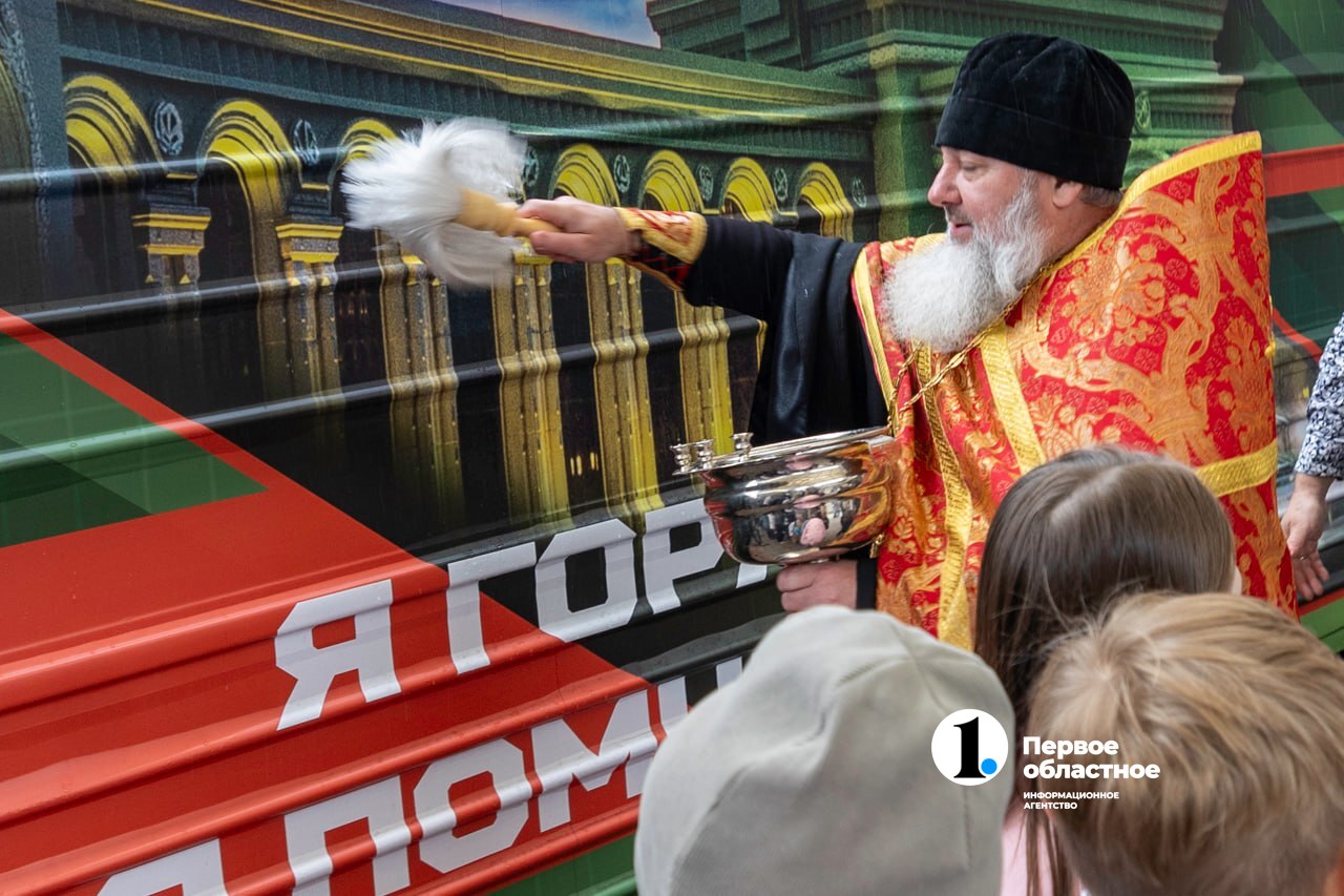 Клирик Свято-Троицкого храма иерей Евгений Червинский окропил святой водой мемориал, вагоны и челябинцев.