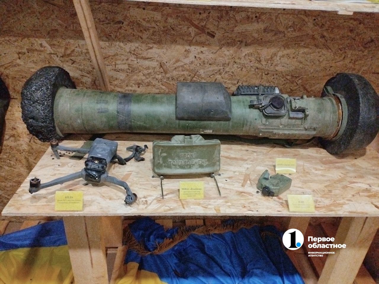 «В экспозиции противотанковый ракетный комплекс „Джавелин“, противопехотная мина направленного действия „Клеймор“ производства США, АТ-4 — одноразовый противотанковый гранатомет производства Швеции, РПГ-75 противопехотный производства Чехословакии… То есть все это подтверждение тому, что Запад снабжает, помогает…» — говорит Александр Тепляков.