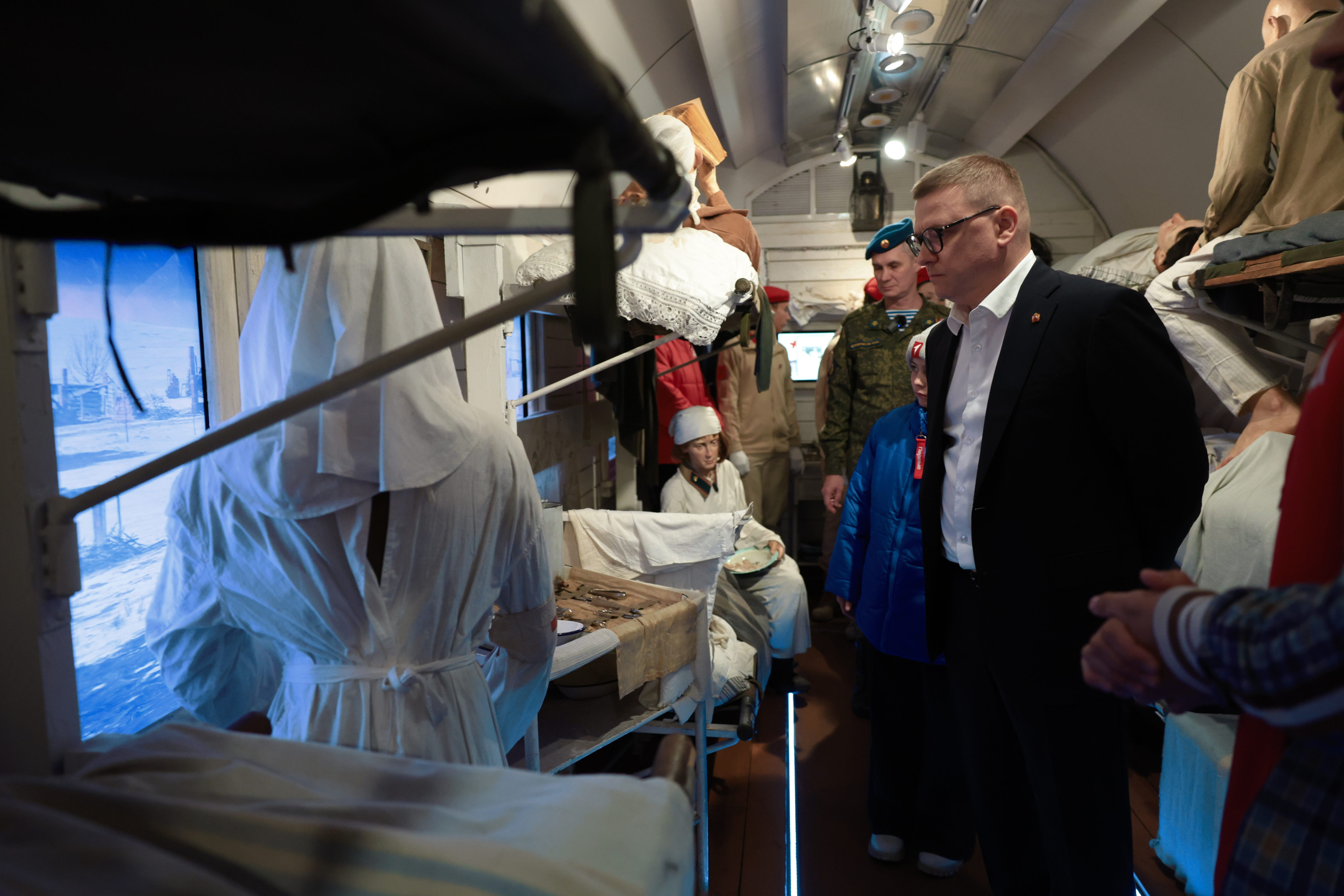 Губернатор отметил, что и сам на выставке построил некий мостик с прошлым: его бабушка работала в годы Великой Отечественной войны в вагоне-эвакогоспитале, а сегодня Алексей Текслер вживую увидел, как в них помогали раненым бойцам.