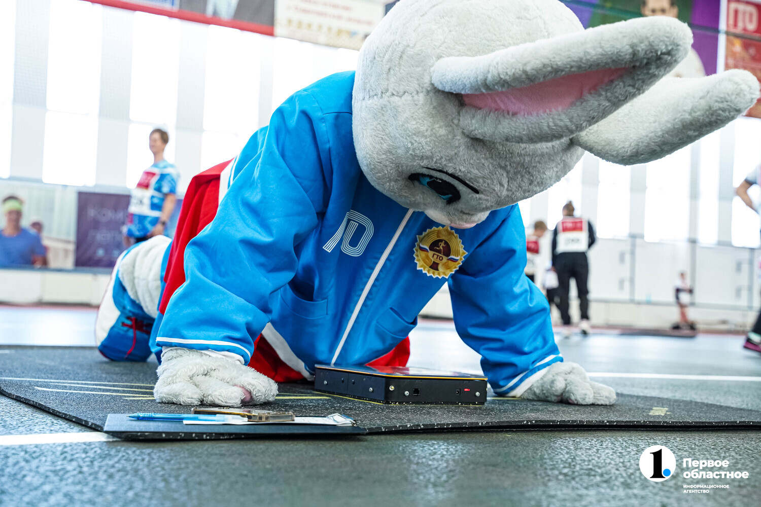 Не удержался от соблазна и попробовал свои силы в выполнении упражнений комплекса ГТО и один из его талисманов — зайка Лиза. Она показала вполне себе хороший уровень подготовки и несколько раз отжалась от пола.
