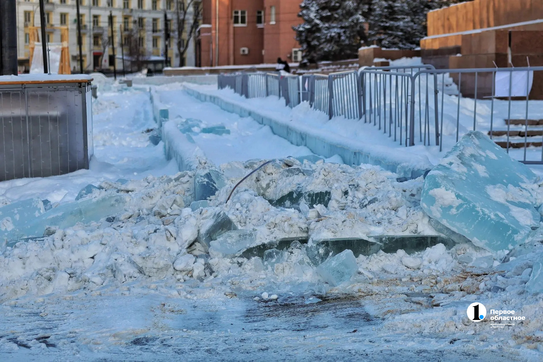 Кажется, что уже к концу длинных выходных от былого великолепия не останется и следа. При этом по контракту подрядчик должен полностью расчистить площадь до 28 февраля — последнего дня зимы.