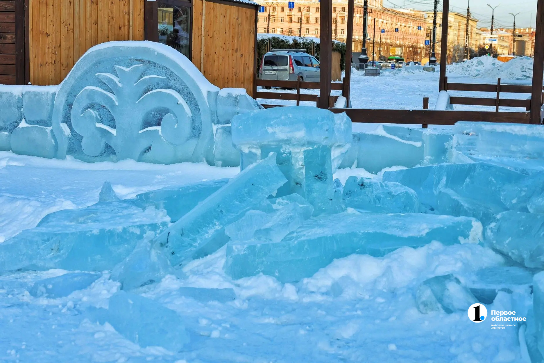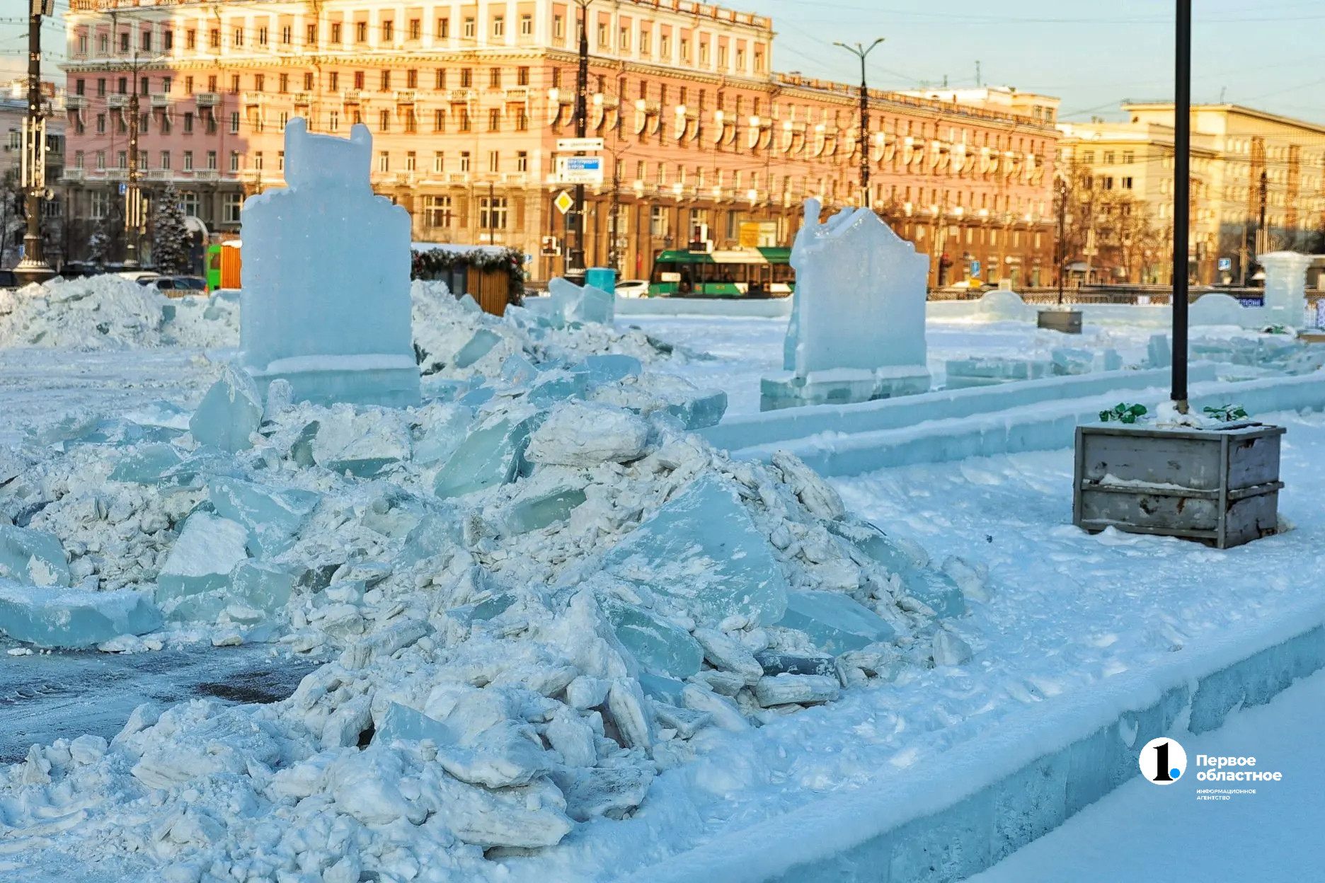 Сегодня, 21 февраля, в Челябинске начали сносить ледовый городок на площади Революции, который в этом году был посвящен юбилею города, передает ИА «Первое областное».
