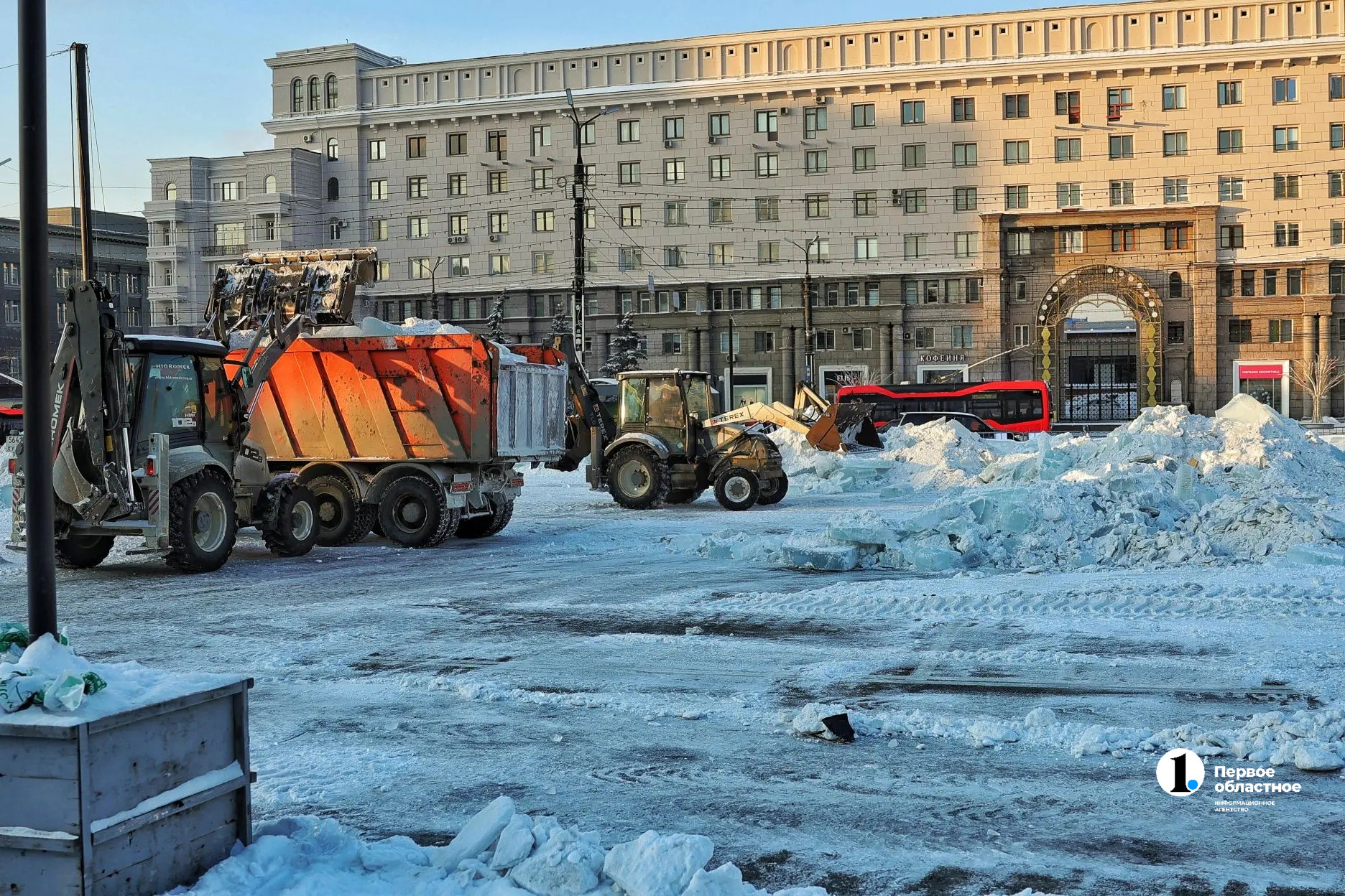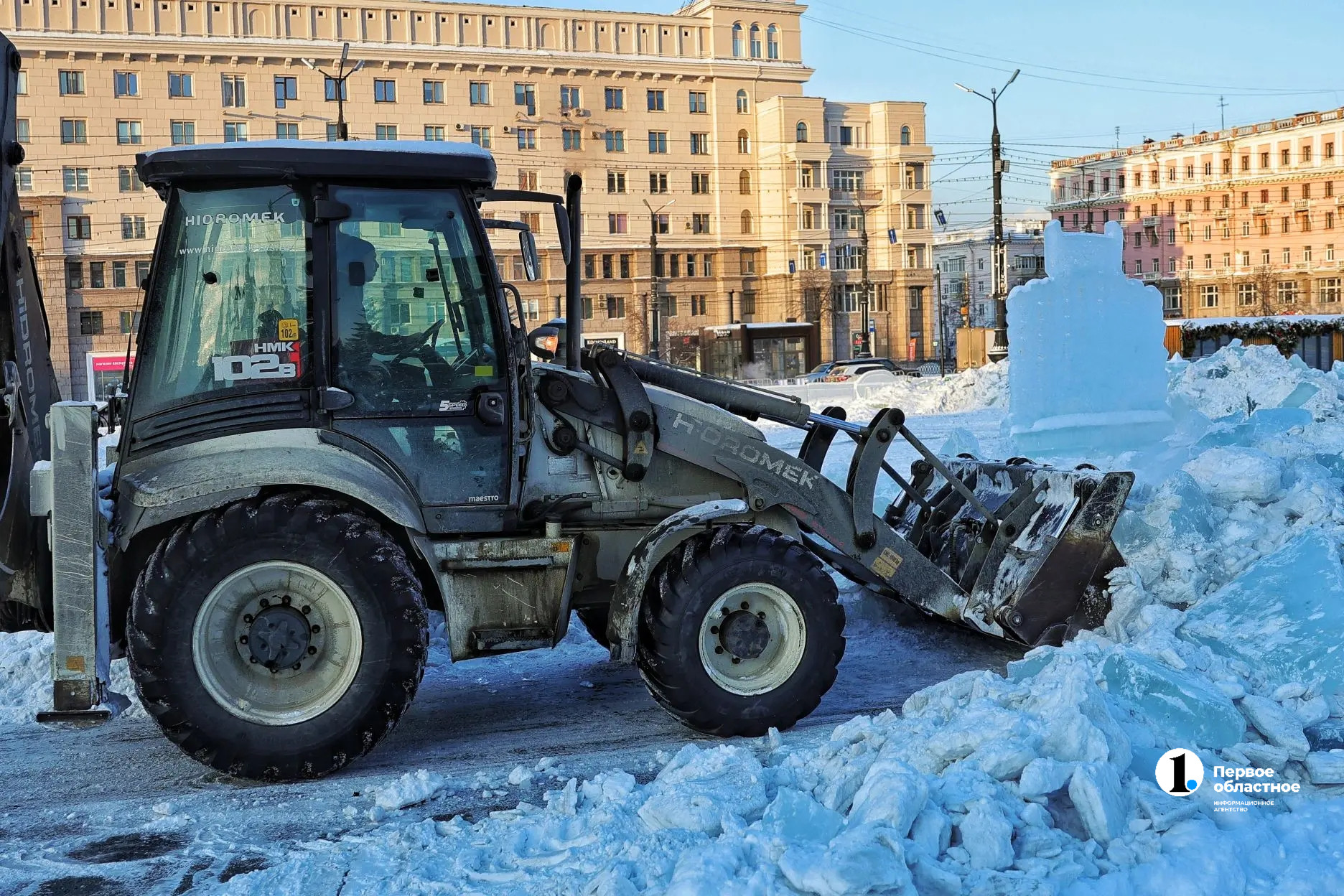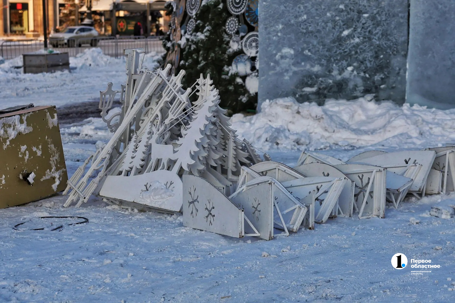 Спецтехника приехала на площадь утром. Уже к вечеру часть ледяных фигур оказалась разрушена, а часть светодиодных — разобрана. Последние законсервируют до следующего года.