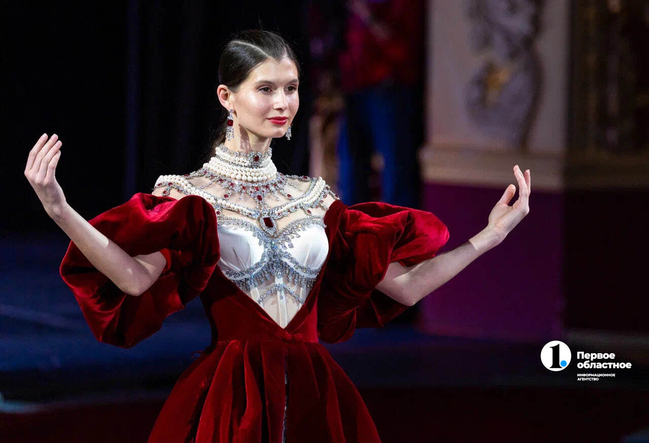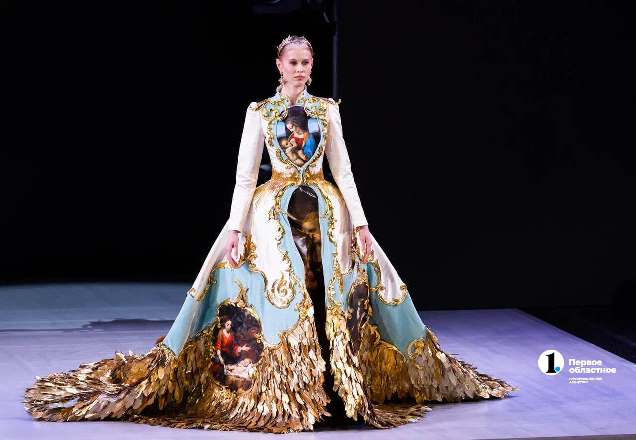 Коллекция «Эрмитаж» приковывает взгляды всего зала. Кажется, что на подиуме не модели, а настоящие императрицы из рода Романовых, только что покинувшие Зимний дворец в Петербурге.