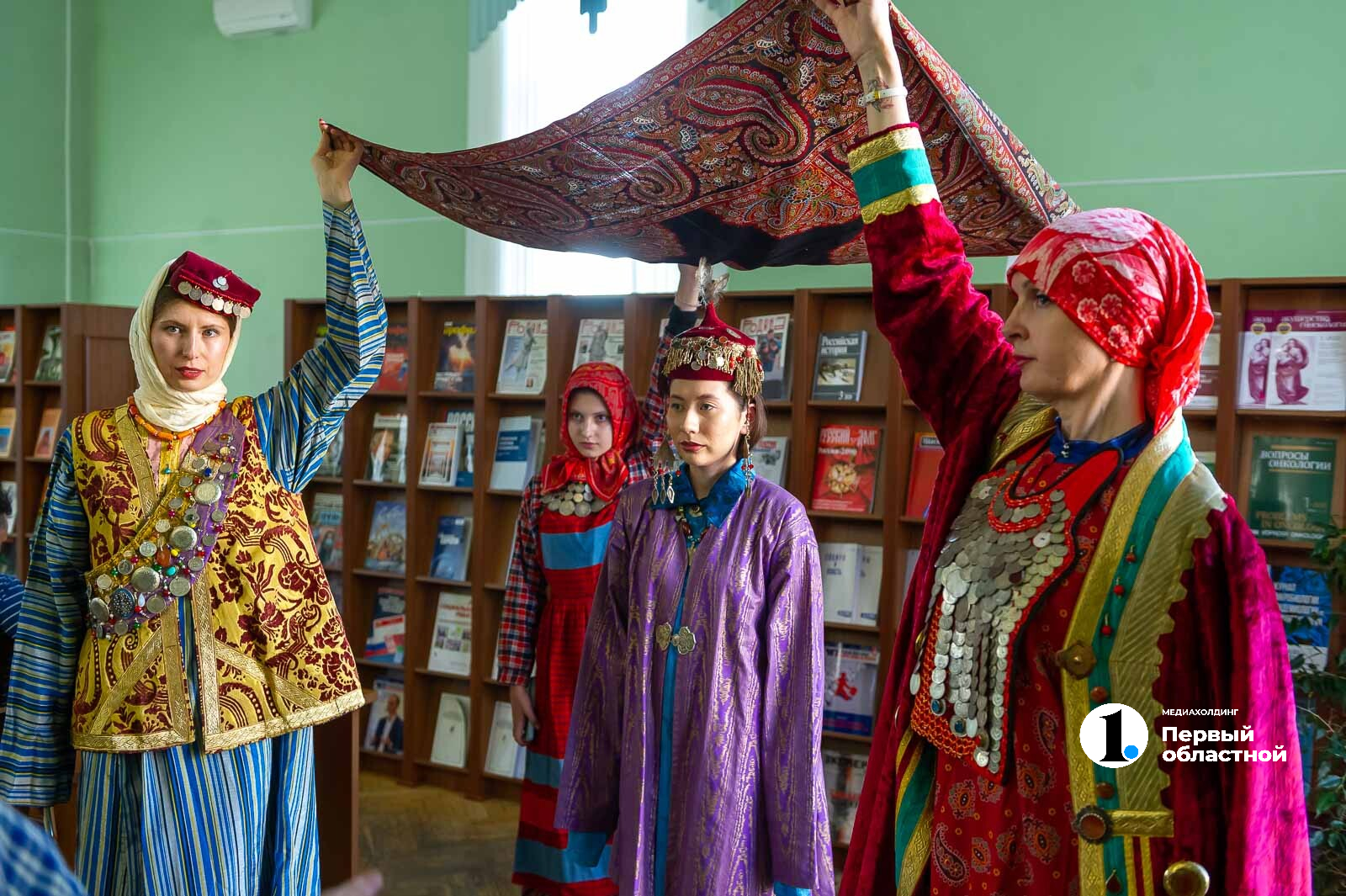Пока дети развлекались, проводя опыты и расписывая значки, для взрослых устроили дефиле костюмов XVIII—XIX веков, а также свадебных платьев народов Урала.