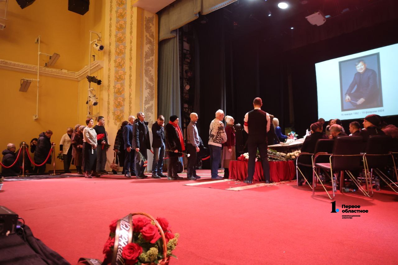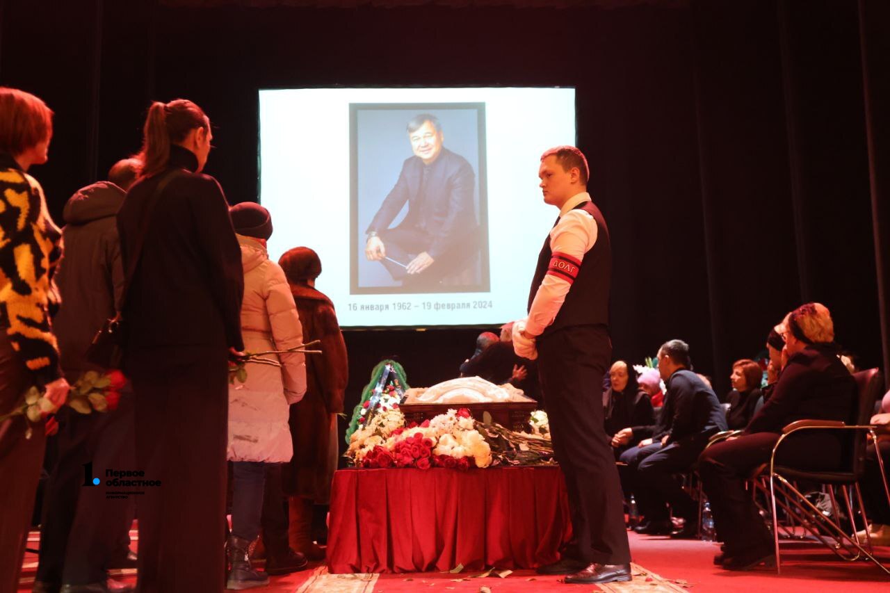 Гроб с покойным дирижером поместили на сцене. Здесь Адик Аскарович отдавал себя любимому делу и подопечным — музыкантам оркестра. Прощание началось в 11 часов, и беспрестанно на сцену поднимались люди, чтобы возложить цветы и принести соболезнования супруге и родным музыканта.