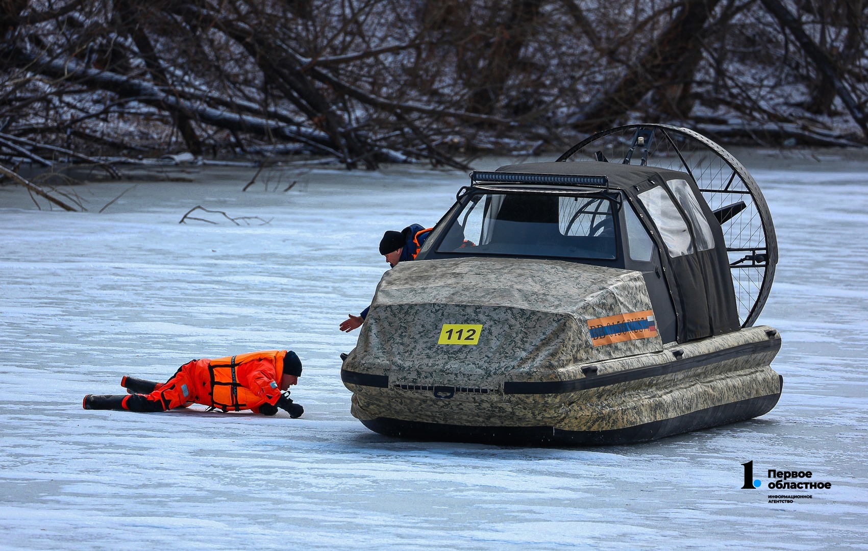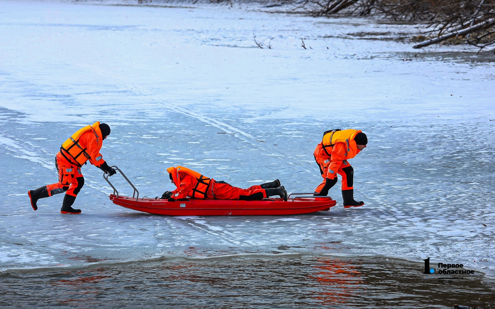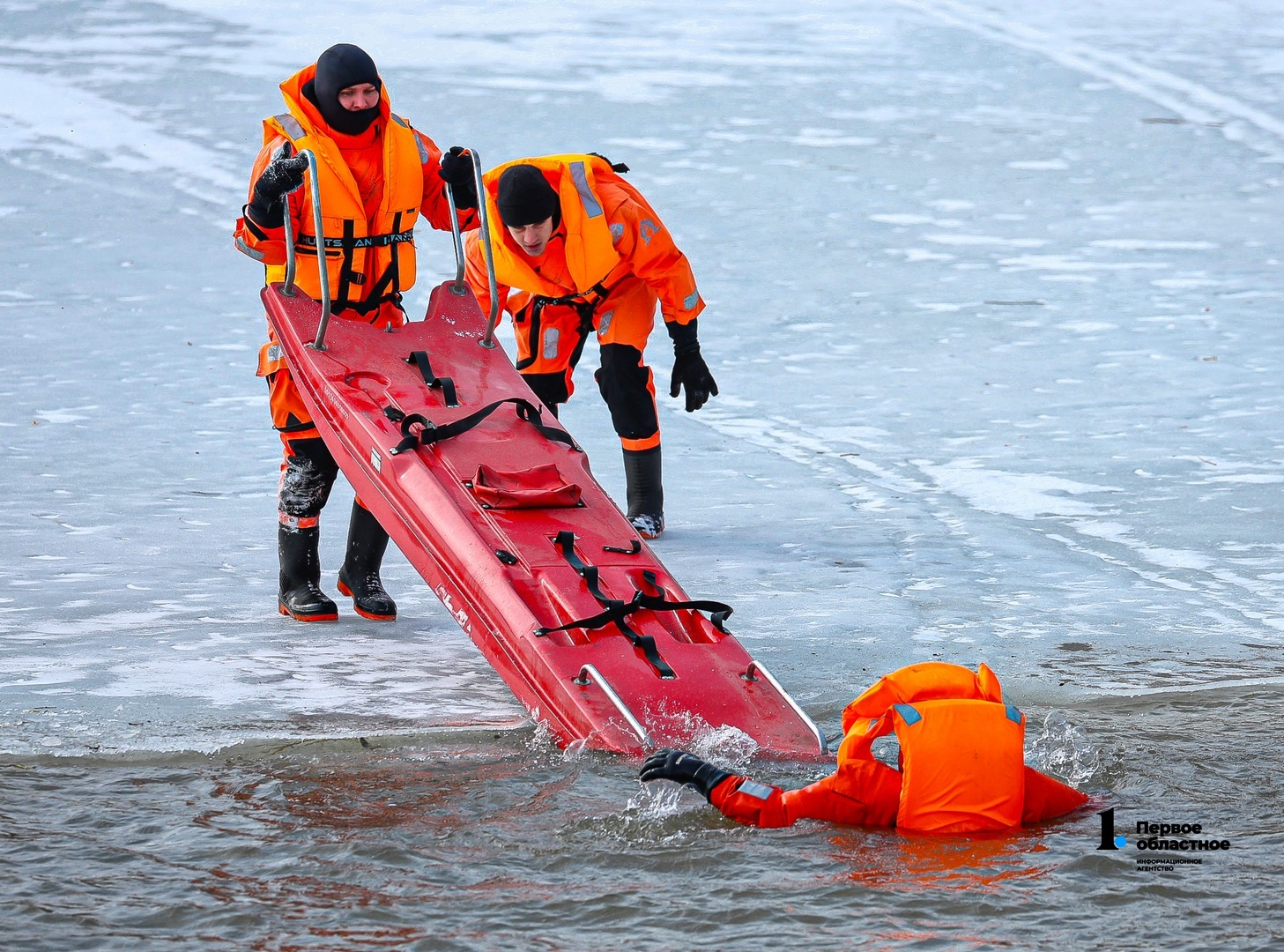 Роль утопающих исполнили сотрудники Поисково-спасательной службы на водных объектах. В теплых костюмах, они пробирались на тонкий лед.