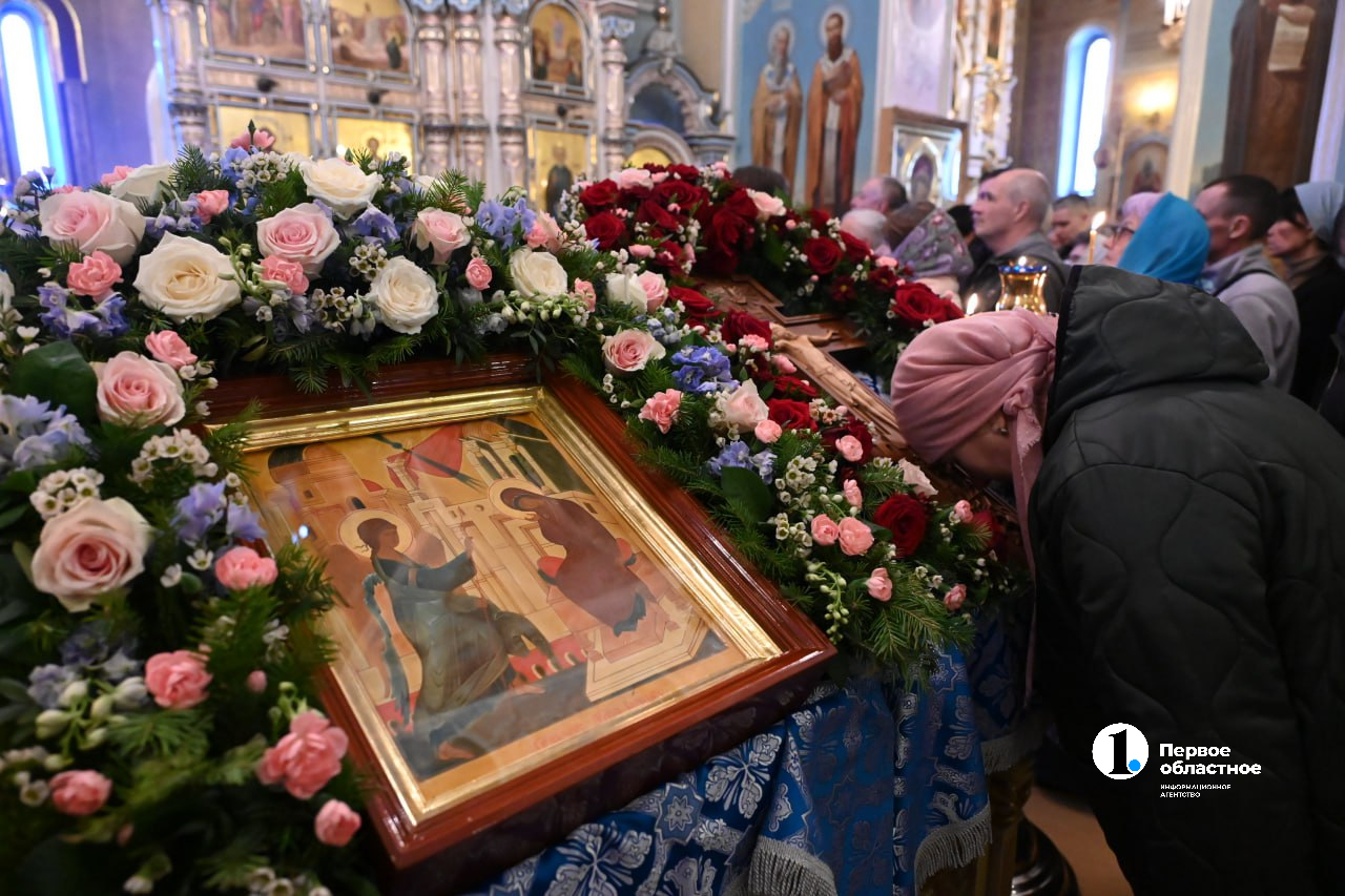 Накануне праздника в храмах проходит Всенощное бдение. В челябинском Свято-Симеоновском кафедральном соборе его провел митрополит Челябинский и Миасский Алексий. В своей проповеди он подчеркнул, что в этом году праздник Благовещения совпадает с Крестопоклонной неделей, что является напоминанием о необходимости нести свой крест и идти тем путем, которым Господь ведет людей к спасению.