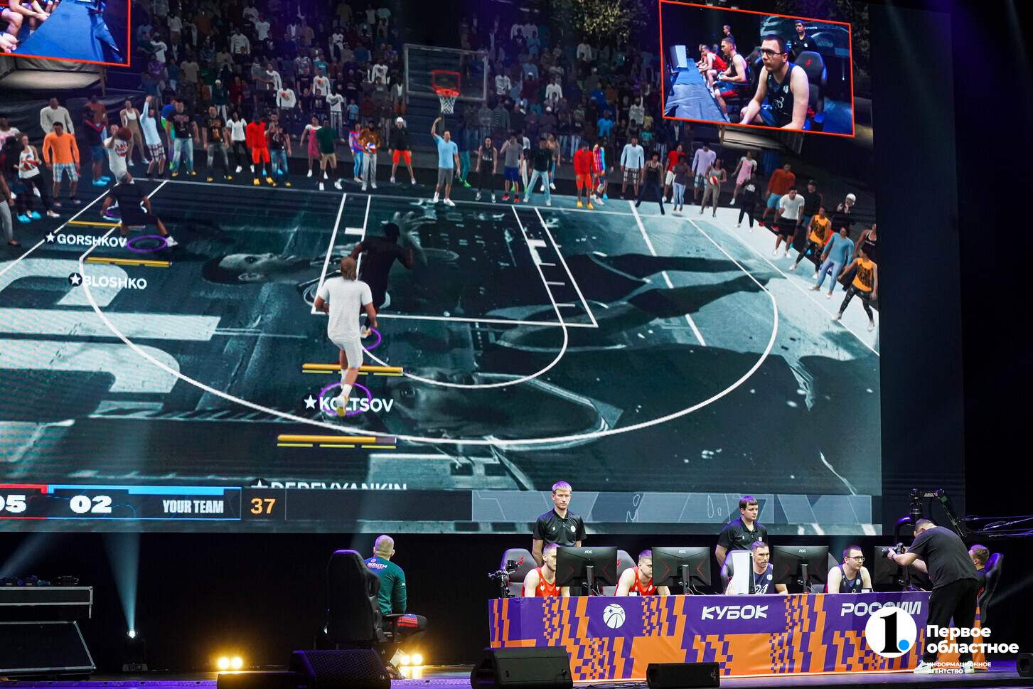 Начнем с того, что формат проведения турнира вроде бы прост, но таит в себе немало подковырок. В заявку каждая команда может внести трех игроков. При этом двое сражаются на консоли в кибербаскетболе (NBA 2K24), два других — в игре на одно кольцо на реальной площадке. При этом они замену игроков команды могут делать только в компьютерной игре.