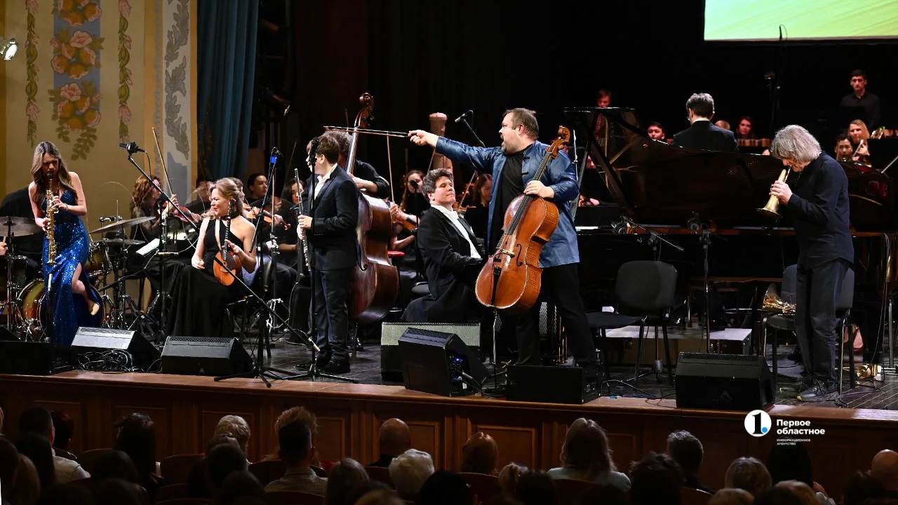 На сцену вместе с маэстро поднялись его коллеги: саксофонистка Софья Тюрина, виолончелист Борислав Струлев, флейтист Владимир Съянов и другие таланты.
