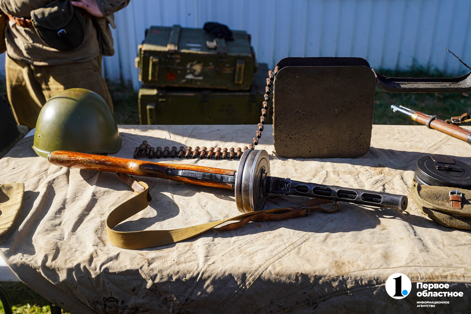 «А это, ребята, лопата — верный друг наших бойцов и незаменимый их помощник. С ее помощью они не только рыли окопы, но и сражались с врагом в ближнем бою. Ну и куда же нашим солдатам без знаменитой ППШ? Самый массовый пистолет-пулемет Красной Армии в годы войны. Он производил до 1000 выстрелов в минуту!» — рассказал Илья Чирков.