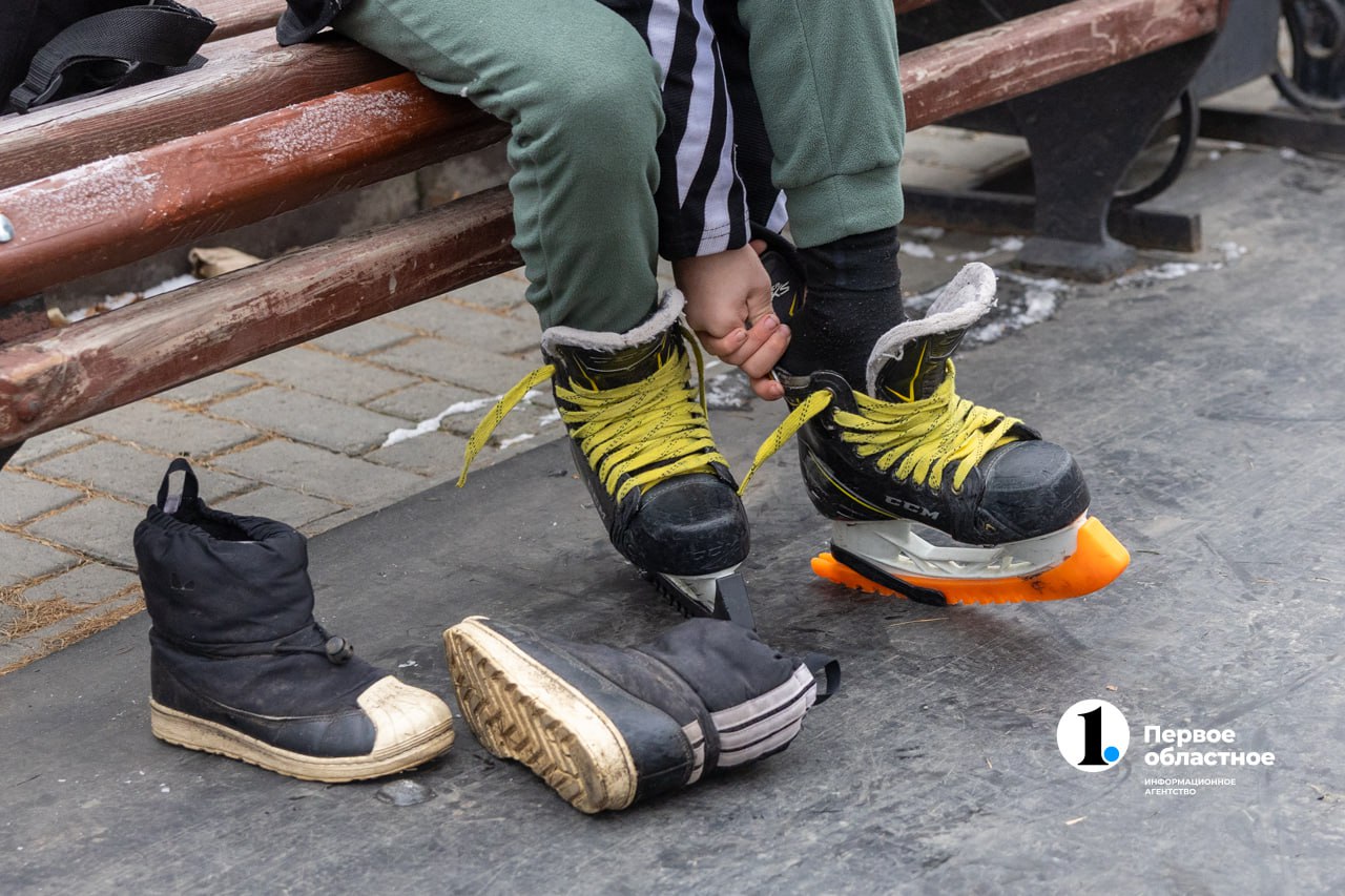 Термосы в руках, шоркание болоньевых штанов и громкая музыка. Челябинцы пролетают на коньках, играют в догонялки, а кто-то только учится ездить, пока с опорой.