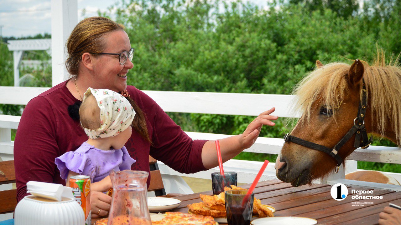 Гостей садов встречают Друшлак и Патисон — обитатели местного пони-кафе. Их, кстати, можно покормить овощами или сушками, или они сами угостятся пиццей с вашей тарелки.