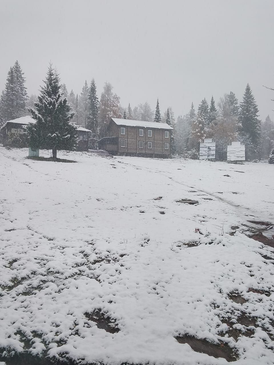 В Златоусте минувшей ночью тоже прошел снег. В городе он быстро растаял, в а нацпарке «Таганай» укрыл землю, деревья и дома. Вот таким утром запечатлели «Гремучий ключ».
