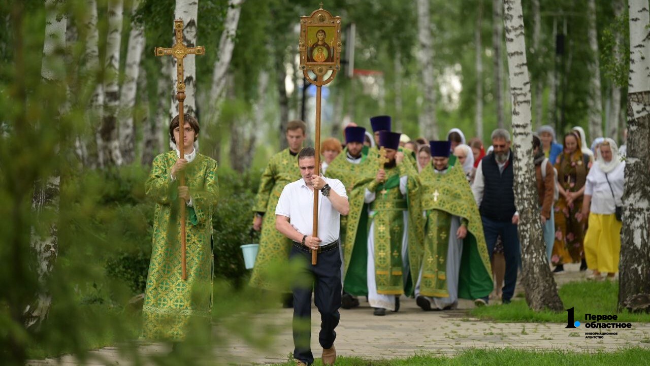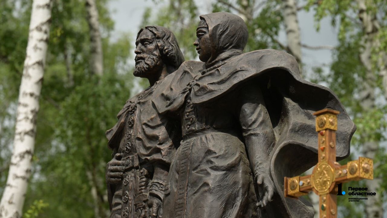 После богослужения духовенство и верующие крестным ходом отправились к памятнику святым Петру и Февронии.