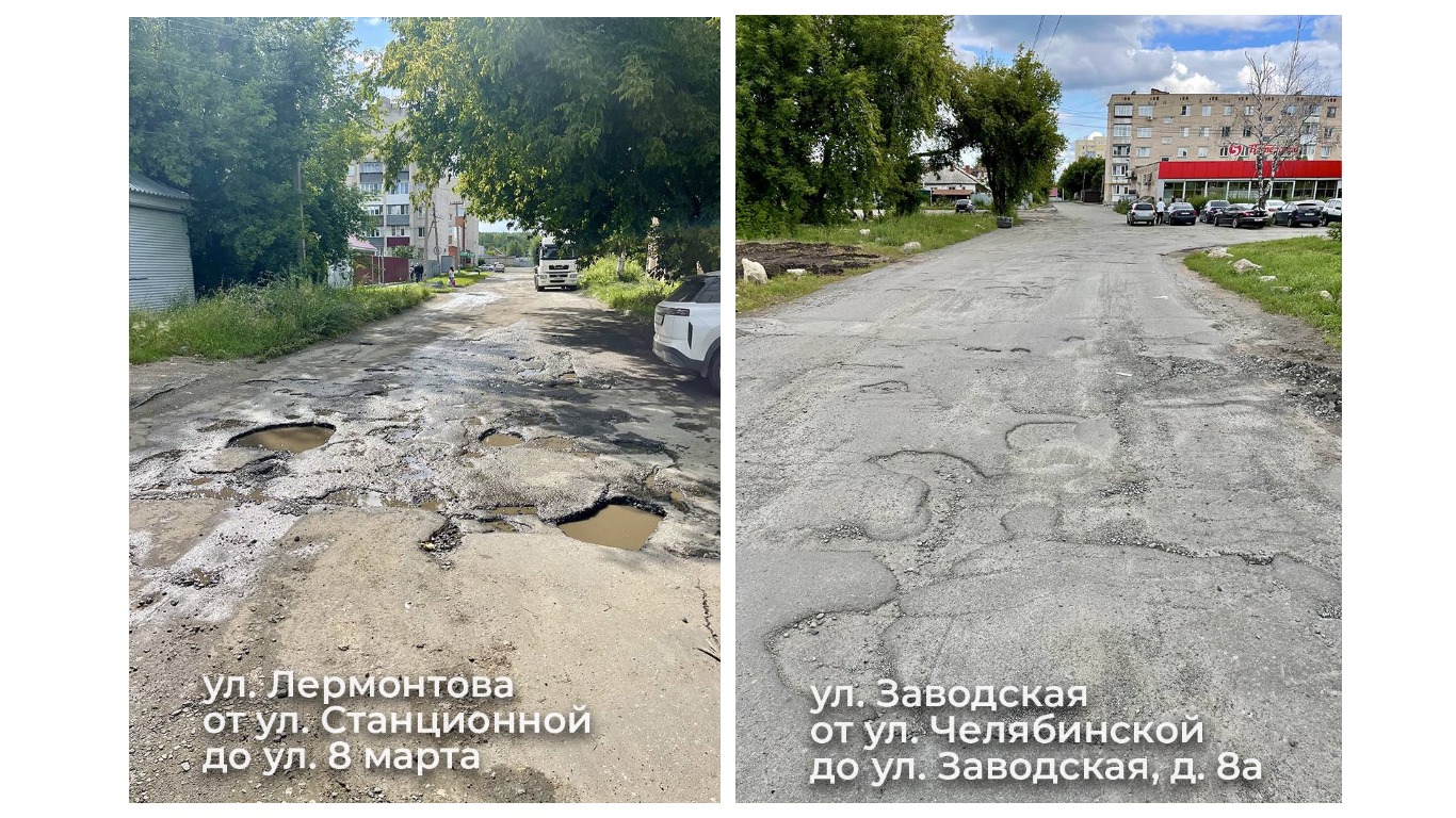 В планах ремонта на будущий 2025 год участок улицы Челябинской от Советской до ж/д путей, улицы Заводской — до дома 8а от Челябинской, а также участков по улицам Громова, Кирова, Советской, Лермонтова, Морозова и Октябрьской.