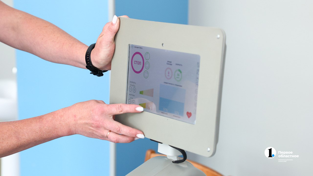 Обновленное по федеральной программе оборудование — отечественного производства. Здесь есть тренажеры для разработки суставов на руках и ногах, с виртуальной реальностью для отработки движений, вертикализатор, велотренажер, а также аппараты для магнитотерапии, лазеротерапии, ультразвуковой терапии и электролечения.