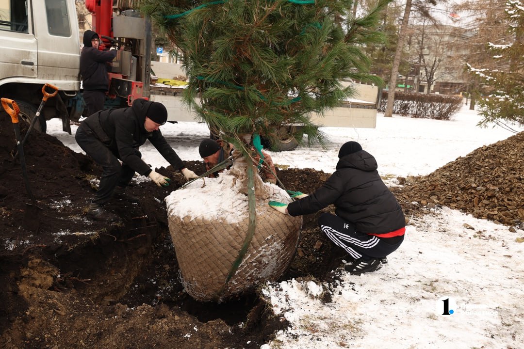 Одиннадцать новых хвойных деревьев высадили сегодня, 4 декабря, на площади Революции в Челябинске. Специалисты МБУ «Горзеленхоз» заменили старые аварийные березы на молодые кедры, сосны и голубые ели, передает корреспондент ИА «Первое областное».