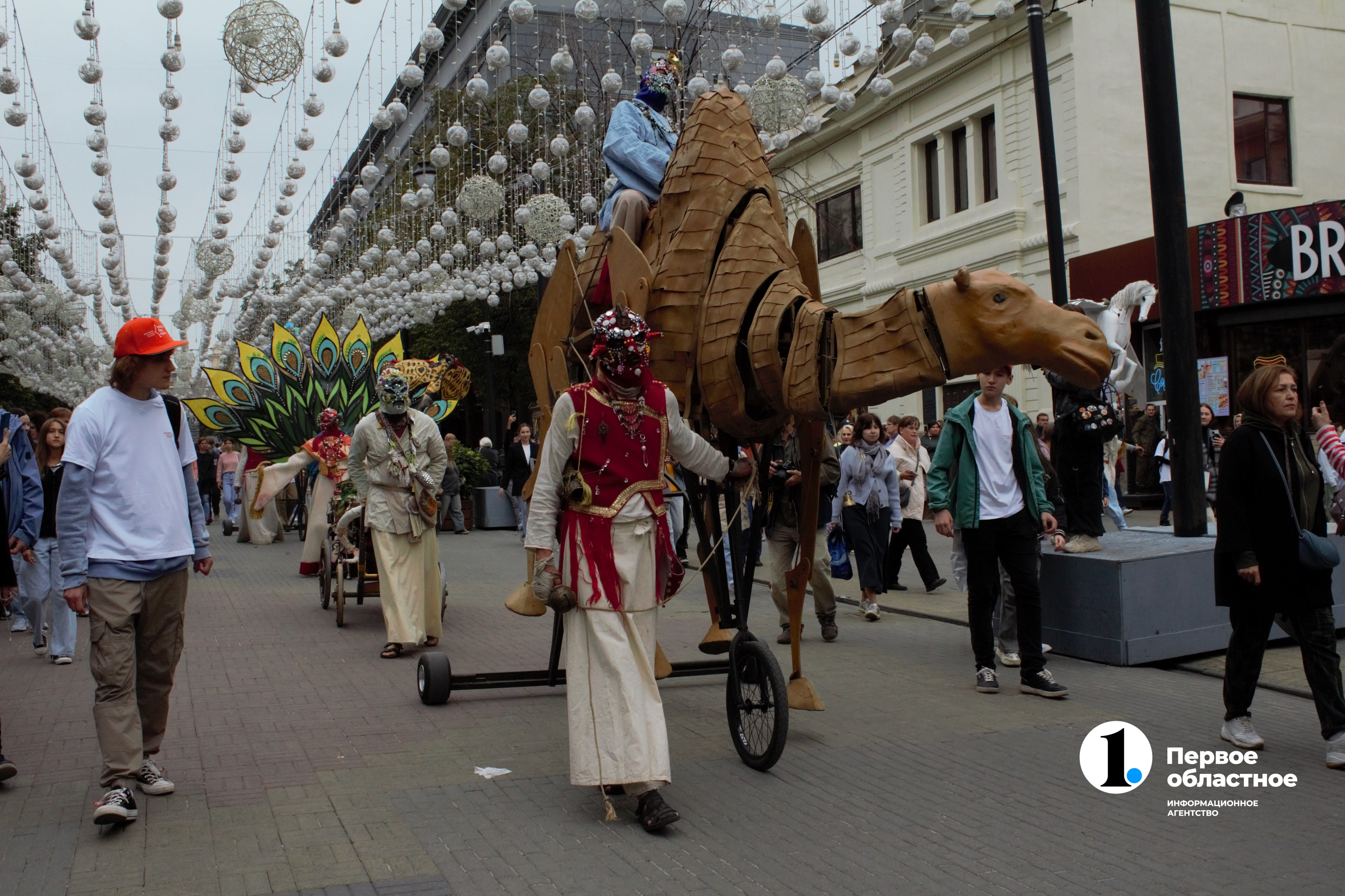 Два механических верблюда, будто созданных, чтобы пройти по Челябинску, их необычные наездники, пегас, паломники фантастического культа — все это надолго останется в памяти у тех, кто выбрался в выходной прогуляться по главной пешеходной улице.