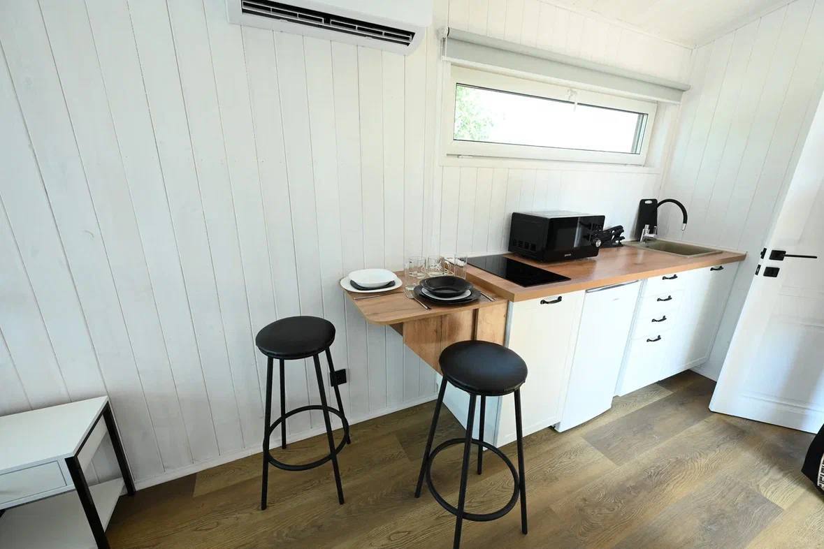 На сегодняшний день на территории лагеря построено 43 модульных номера для размещения гостей. В них есть все необходимое: кухня, санузел, кондиционер. У каждого домика своя веранда. До конца года появится еще 12 таких номеров.