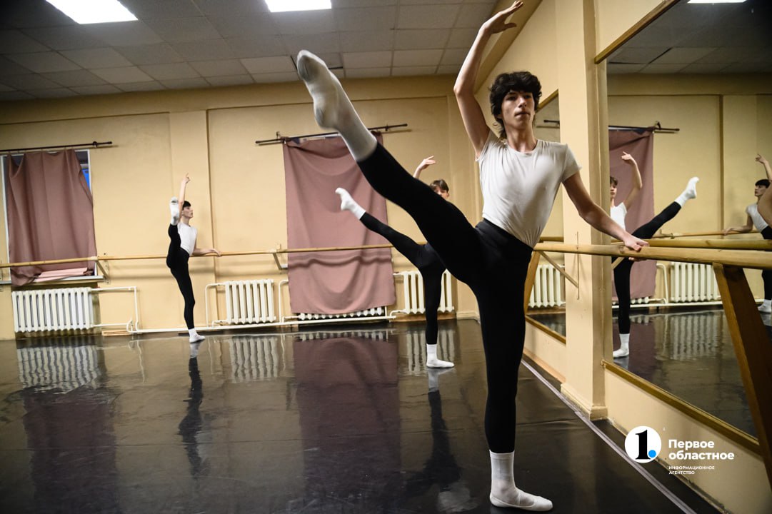 Небольшая комната в Челябинском театре оперы и балета именуется как малая балетная зала. Здесь собралась группа ребят в ожидании урока. Они — учащиеся Южно-Уральского государственного института искусств. Их форма для занятий — черное обтягивающее трико, белые футболки, носки и чешки. Педагог выходит на середину зала, включает мелодичную классическую музыку. Однако плавные звуки вскоре перекрывает его звучный, властный голос: