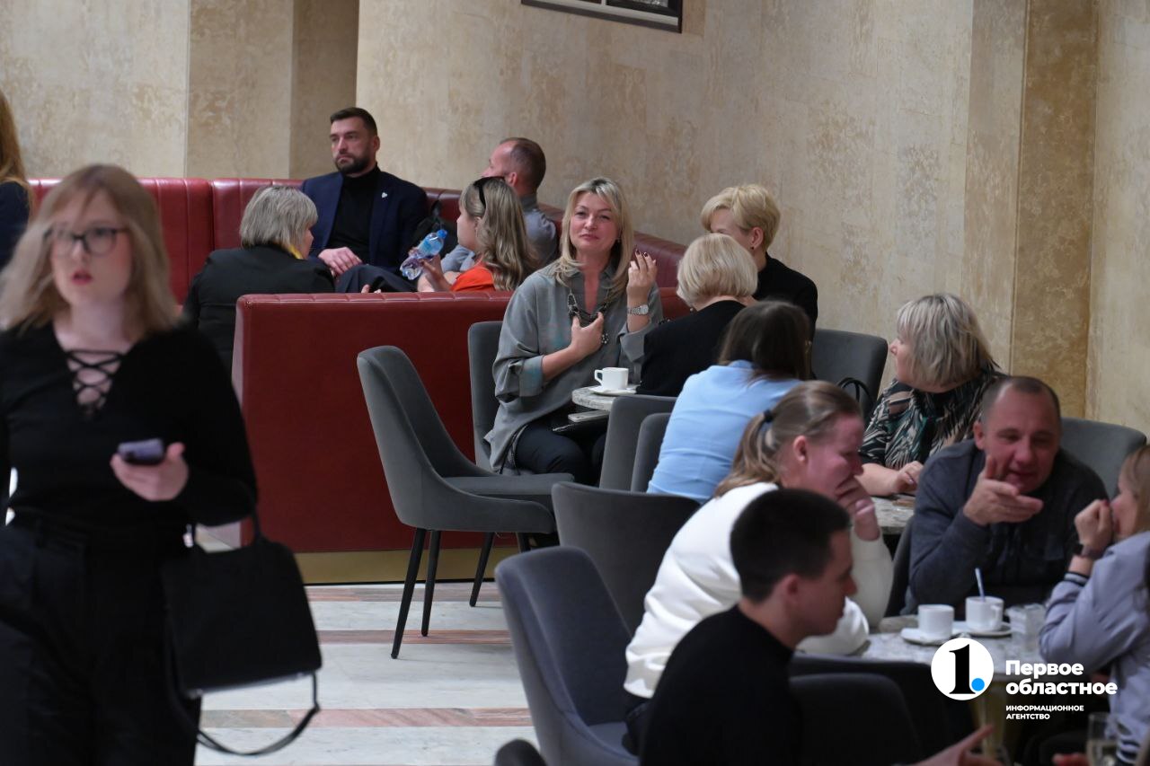 В буфете поставили новую стойку и увеличили места для кассиров. Вокруг тоже добавили современных ламп и деталей интерьера. Убрали мягкую зону, но поставили много высоких барных столиков и низеньких с креслами. Прямо перекус на любой вкус — кто-то любит постоять, кто-то расслабиться с фужером в кресле.