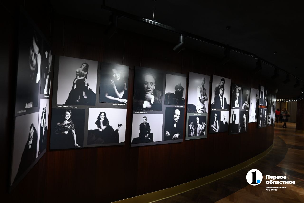К слову о фасадах. На этажах на их красном фоне развесили фотографии артистов Драмы. Они были и раньше, но на этот раз концепцию поменяли. На стенах одних этажей можно увидеть действующую труппу, а других — актеров прошлых лет в костюмах из разных постановок. Кое-где фотографии сдвоены — слева и справа на коллаже собраны артисты разных веков в одном театральном образе.
