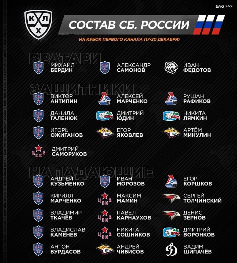 Кубок Первого канала пройдёт с 17 по 20 декабря в Москве. В первый день турнира сборная России в 21:30 по челябинскому времени сыграет с командой Швеции, затем 19 декабря в 17:30 национальную команду ждёт игра против Чехии, а 20 декабря россияне скрестят клюшки с финнами. Эта игра начнётся в 17:30.