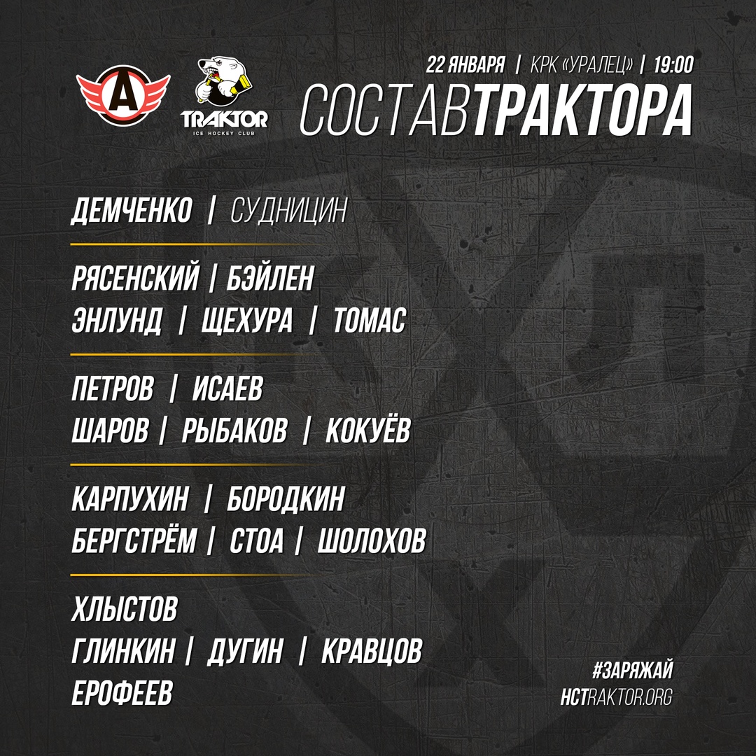 Добрый день, уважаемые читатели 1obl.ru! Сегодня, 22 января, «Трактор» проведет первый матч выездного турне по маршруту «Екатеринбург — Магнитогорск — Казань». В первой игре этой серии «черно-белые» проведут матч с «Автомобилистом».